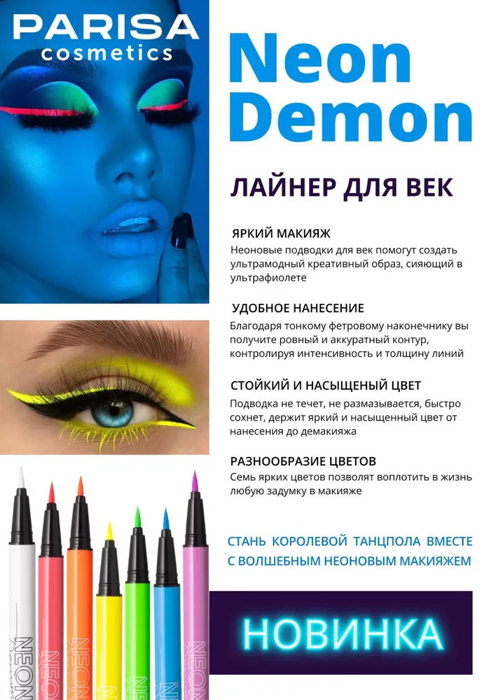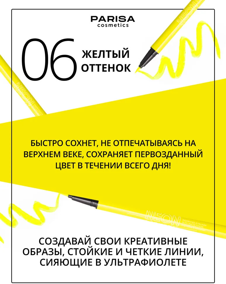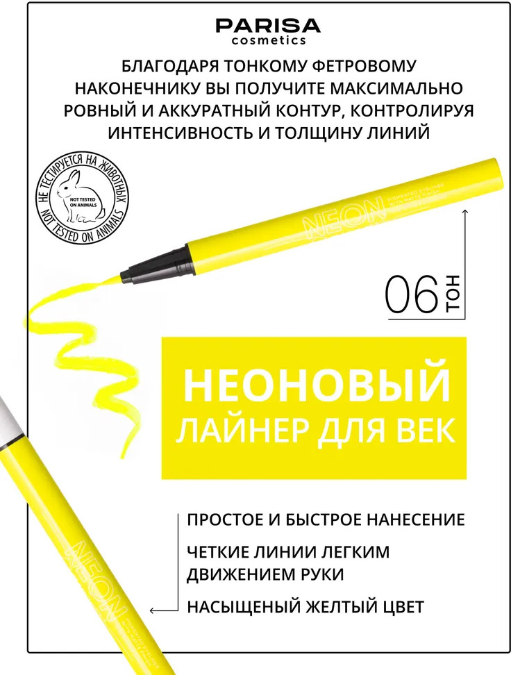 Parisa Cosmetics Лайнер для век «Neon Demon», оттенок 06 Желтый