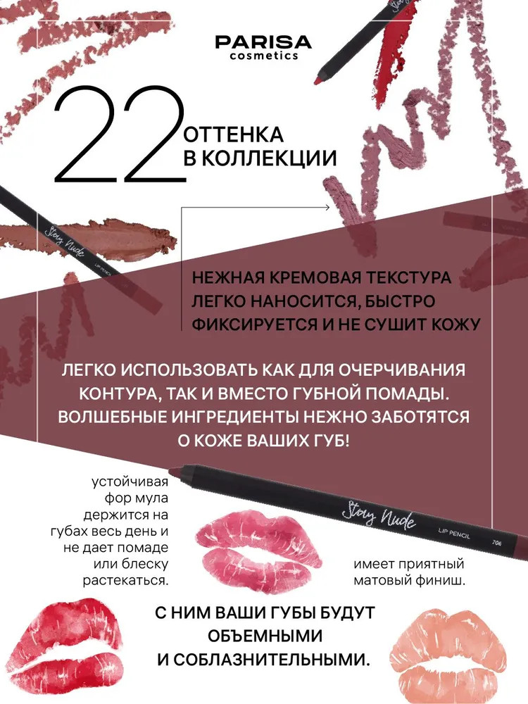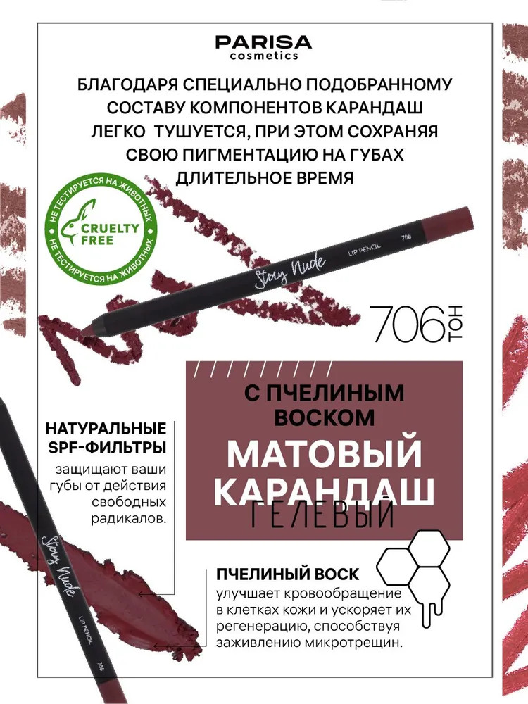 Parisa Cosmetics Карандаш для губ «Stay Nude», тон 706 Infatuation