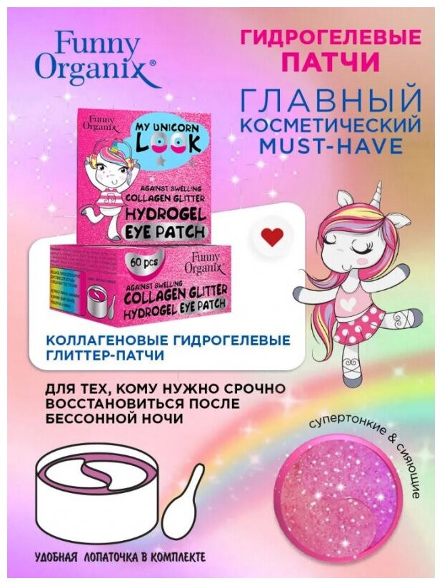 Funny Organix Глиттер-патчи для кожи вокруг глаз коллагеновые «My Unicorn Look»