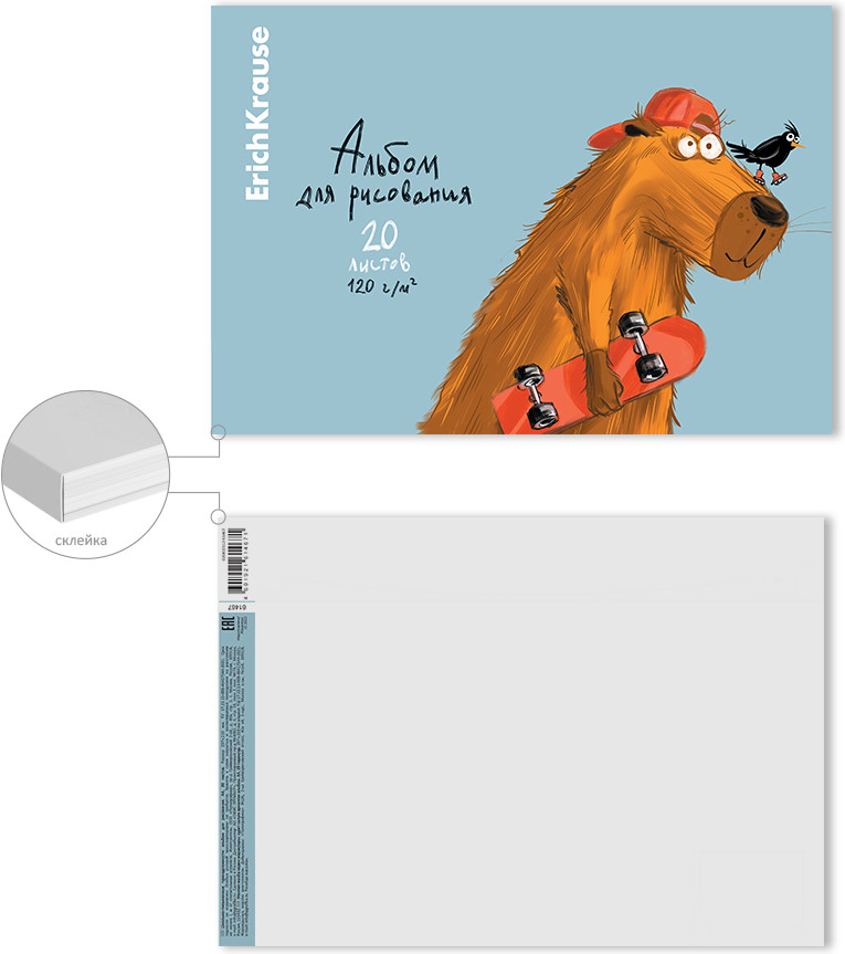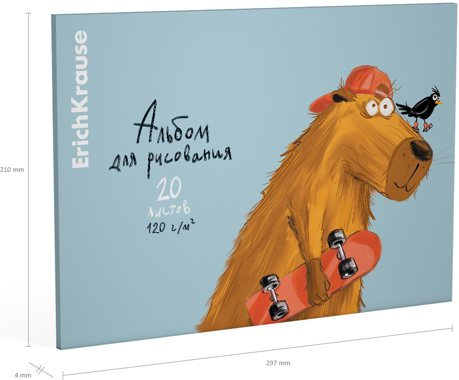 Erich Krause Альбом для рисованияВ данный момент этот товар отсутствует в продаже. Возможно, у нас найдется аналогичный или похожий товар здесь. Серия: Happy Capy Альбом для рисования формата А4 (210×297 мм). Обложка из высококачественного мелованного картона плотностью 170 г/м2. Жесткая подложка 360 г/м2. В блоке 20 листов. Бумага плотностью 120 г/м2. Белизна бумаги — 100%. Тип скрепления — клей. |