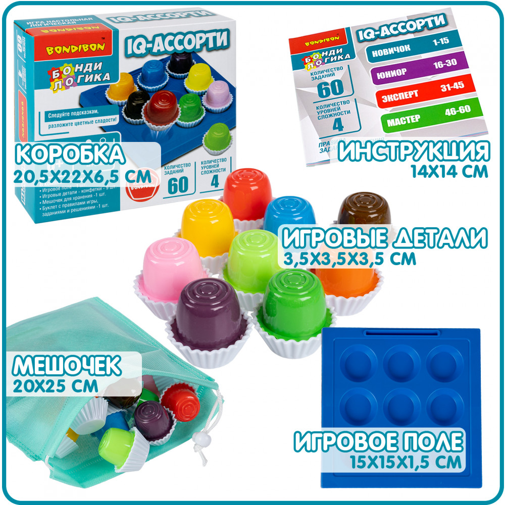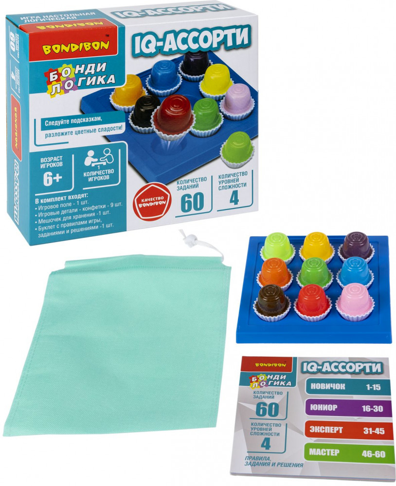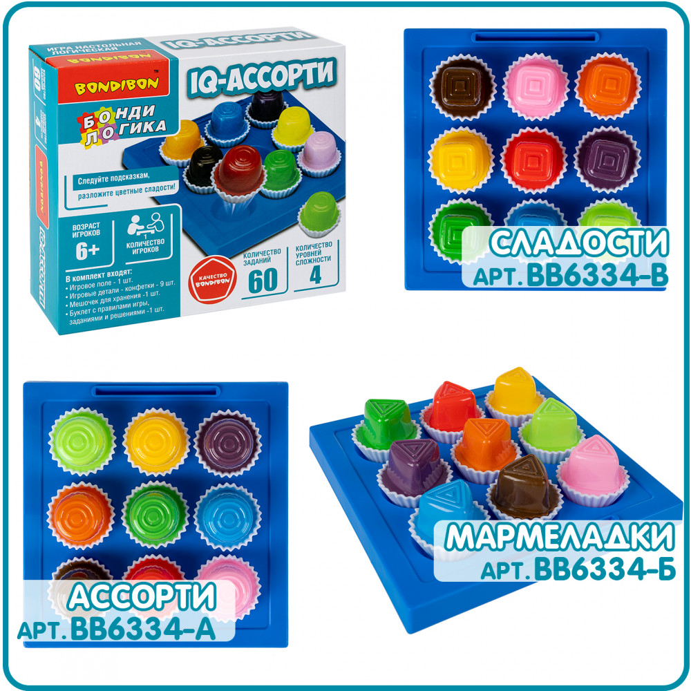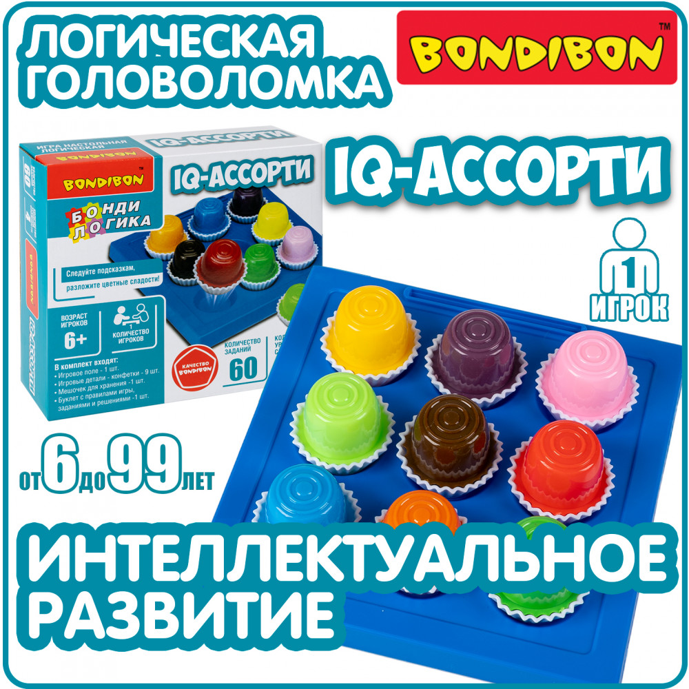 Настольная игра IQ-АССОРТИ серии БондиЛогика от Бондибон не только станет прекрасным подарком для ребенка, но и поможет развить концентрацию внимания и логическое мышление.