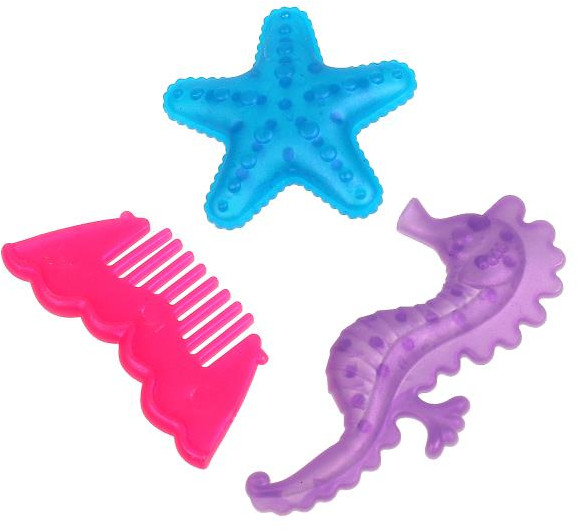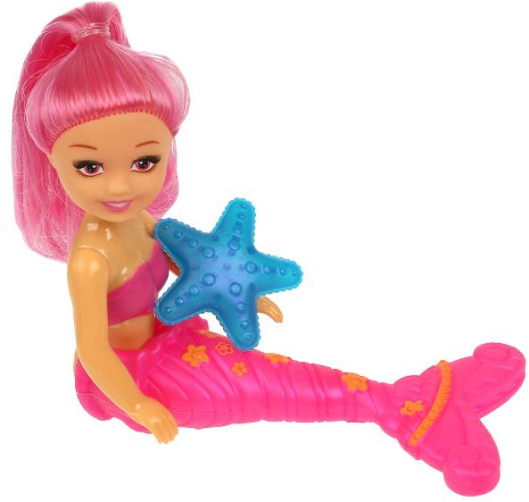 Милая куколка в образе русалки с ярким подвижным хвостом непременно понравится вашей малышке. У русалочки красивые длинные волосы розового цвета, их можно заплетать в разнообразные причёски. Для ухода за волосами в наборе предусмотрен гребень. Кукла выполнена из качественного пластика, её можно использовать при играх в воде, как и дополнительные аксессуары из набора.