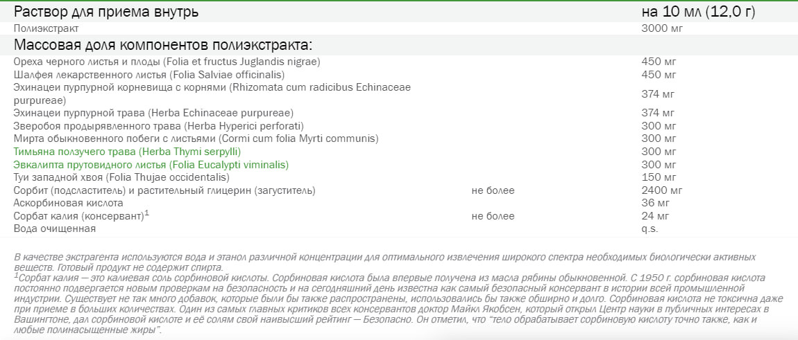 В отличие от химических антибиотиков не вызывает побочных реакций и не приводит к привыканию бактерий к нему. Это позволяет эффективно принимать препарат в течение длительного периода. Не содержит спирта и консервантов.