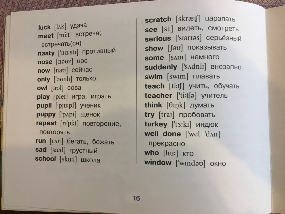 Лидия Отличная книжка с увлекательным содержанием. Картинки яркие, большие. На последних страницах даны игровые задания. Имеется также транскрипция словарных слов.