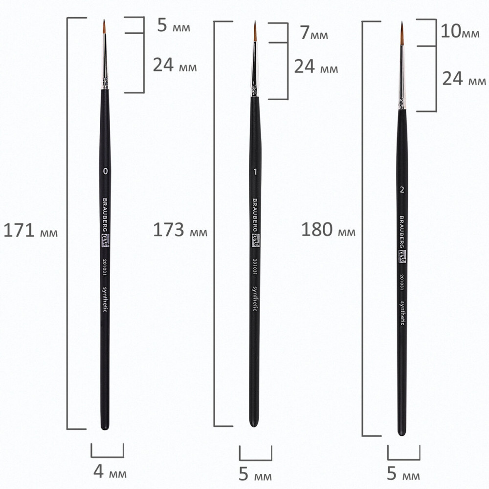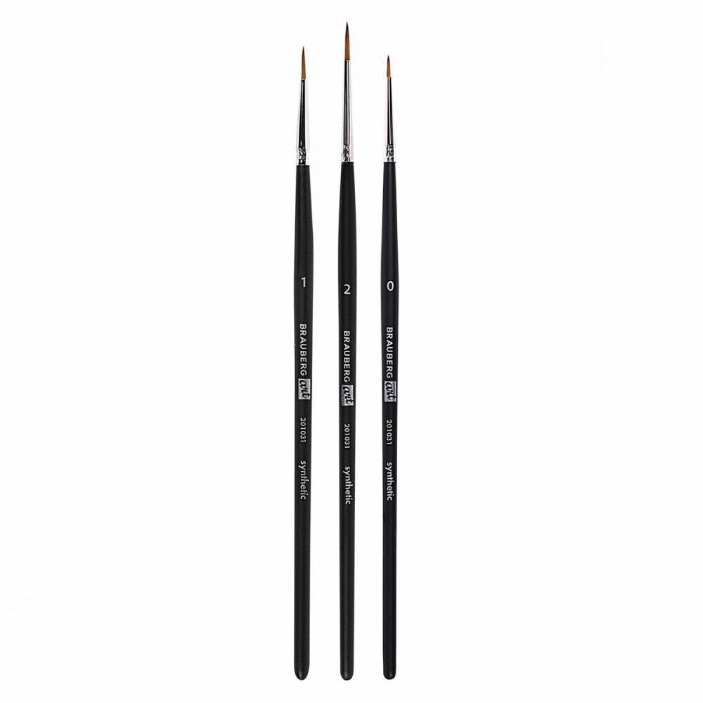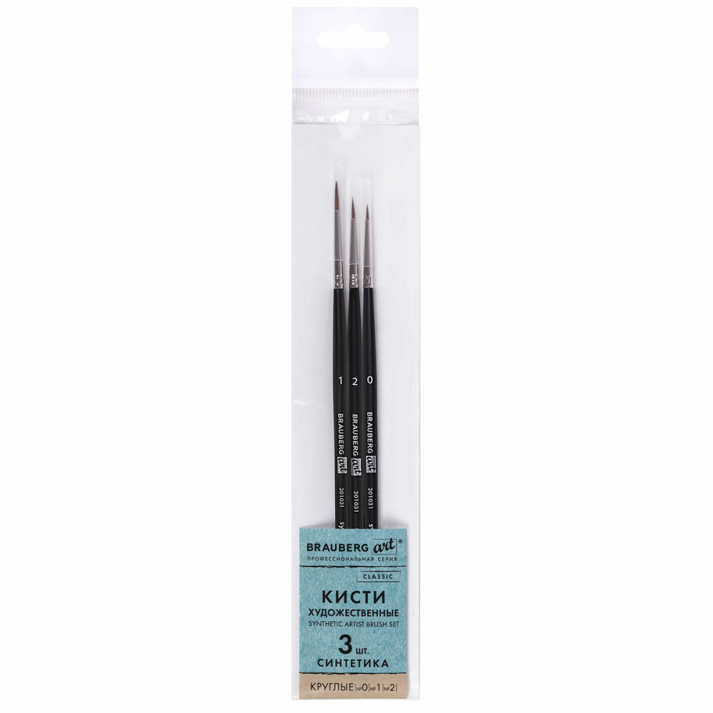 Кисти изготовлены с применением синтетики. Отличаются универсальностью в использовании, обусловленной упругостью ворса и прекрасными впитывающими свойствами пучка. Короткая ручка из древесины покрыта лаком, что защищает ее от воздействия красок и влаги. Форма пучка — круглая № 0, 1, 2. Номер кисти соответствует реальной ширине пучка в миллиметрах. Упаковка — пакет с европодвесом и картонной подложкой.