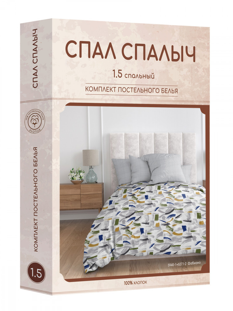 Коллекция «Спал Спалыч» из высококачественной импортной хлопчатобумажной бязи. Ткань прошла процедуру обработки по технологии Perfect Way: мягчение, каландрирование (прокатывание ткани между горячими валами) благодаря чему ткань приобретает гладкость и шелковистый блеск. Процесс превращает круглые нити в плоские, придавая ткани серебристый блеск (Эффект «лаке»). Коллекция дизайнов отличается особенным характером и разнообразием, в ней представлены как классические цветы и европейские дизайны, так и восточные огурцы и разнообразные орнаменты. Ткань — бязь (100% хлопок), плотность 120+/5гр, имеет сертификат OEKO-TEX 100 — безопасный текстиль.