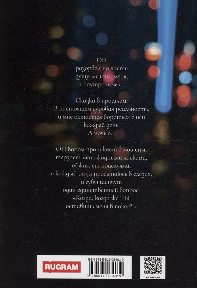 💳 Оплатить за товар можно при получении 🇰🇿 Есть бесплатная доставка по Казахстану 🎁 Копите бонусы с каждой покупки Он разорвал на части душу, мечты, меня, а наутро исчез... Сказка в прошлом. В настоящем суровая реальность, и мне остается бороться с ней каждый день. А ночью... Он вором проникает в мои сны, терзает меня жадными ласками, обжигает поцелуями, и каждый раз я просыпаюсь в слезах, а губы шепчут один единственный вопрос: «Когда, когда же ты оставишь меня в покое?!». |