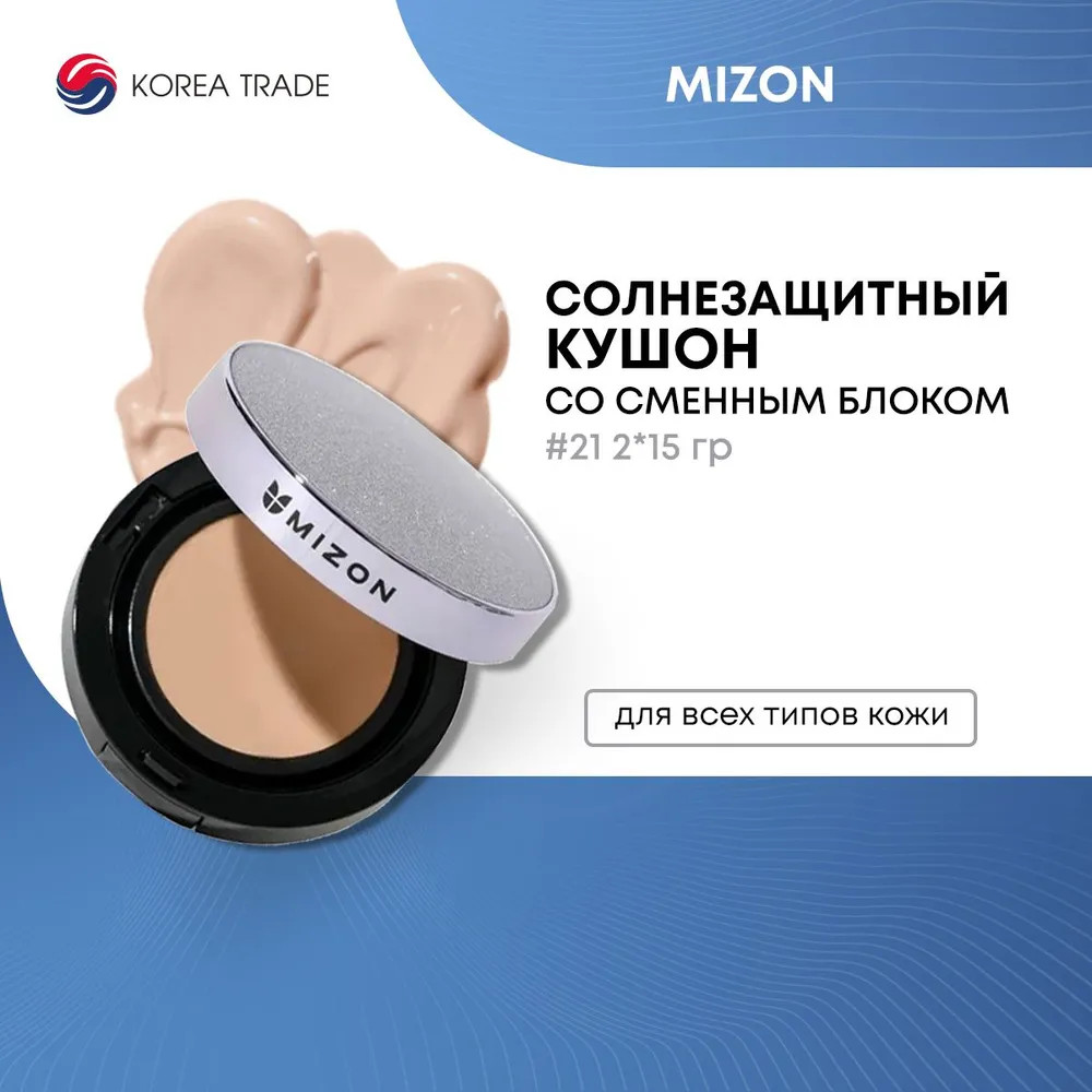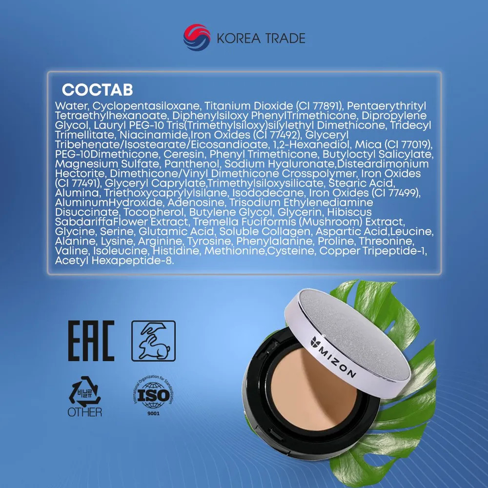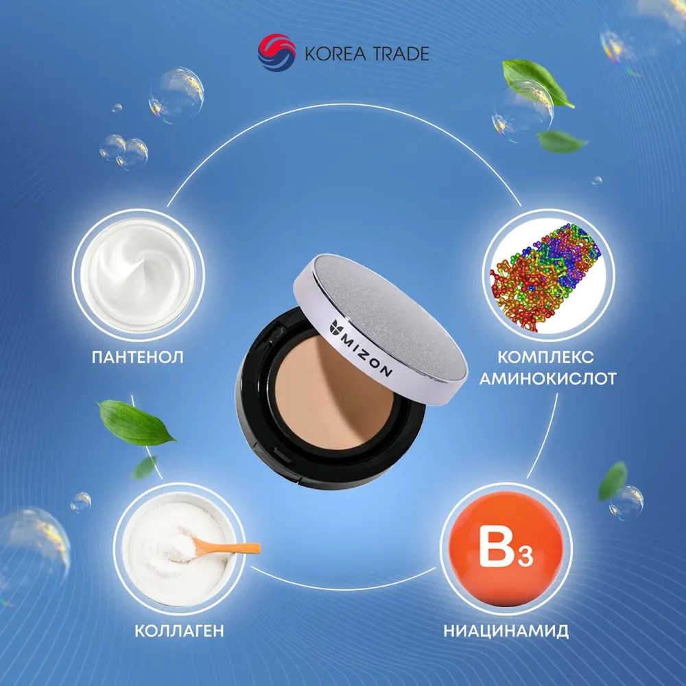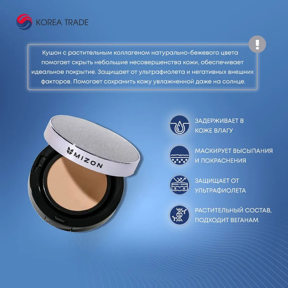 Mizon Кушон для лица тональный «Vegan Collagen Cushion», оттенок 21 Светло-бежевый