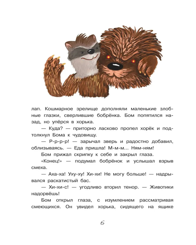 💳 Оплатить за товар можно при получении 🇰🇿 Есть бесплатная доставка по Казахстану 🎁 Копите бонусы с каждой покупки Серия: Читаем вместе. Дружная семья Новые приключения бобрёнка Бома разворачиваются далеко от дома и родной реки. До лесного оркестра, в котором бобрёнок хочет выступать, не добраться вплавь, приходится идти пешком. По дороге в Дальний лес его ожидают новые приключения. Бом познакомится с бандой хорьков, которые будут видеть в нём только исполнителя их коварных планов, а не своего друга. Но, несмотря на это, Бому посчастливится найти добрых товарищей, которые помогут ему убежать от хорьков-разбойников и осуществить свою мечту. ...Взмах дирижёрской палочки, и над деревьями поплыли чудесные звуки. Для старшего дошкольного возраста. |