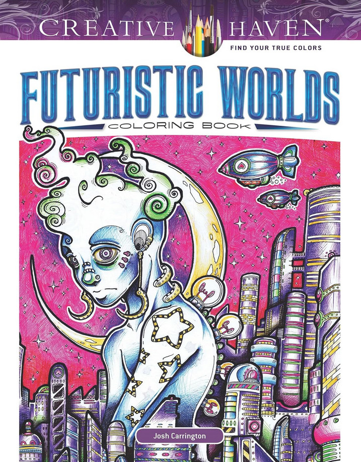 Creative Haven Futuristic Worlds Coloring Book+365