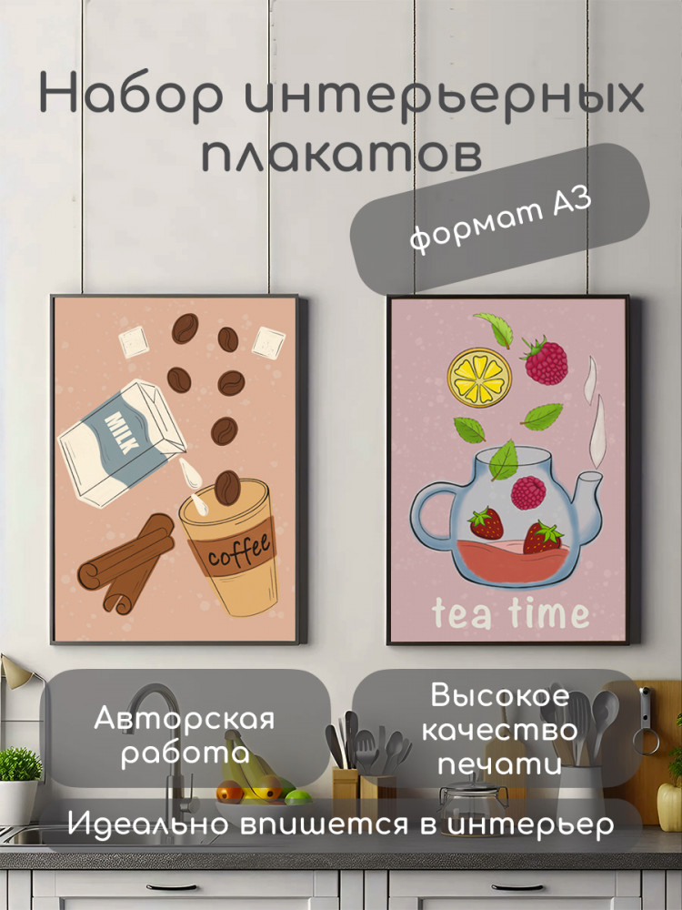 Kuzicheva_art Набор интерьерных постеров для кухни «Чай» и «Кофе»+41