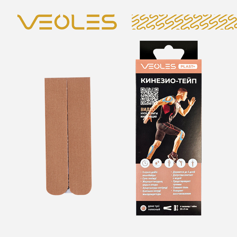 Кинезио-тейп VEOLES — эластичная клейкая лента, тянущаяся вдоль длины до 70% и не тянущаяся поперек. Это свойство позволяет широко использовать кинезио-тейпы VEOLES разных форм и размеров в спортивной отрасли, в индустрии красоты и здоровья, прикладной медицине.