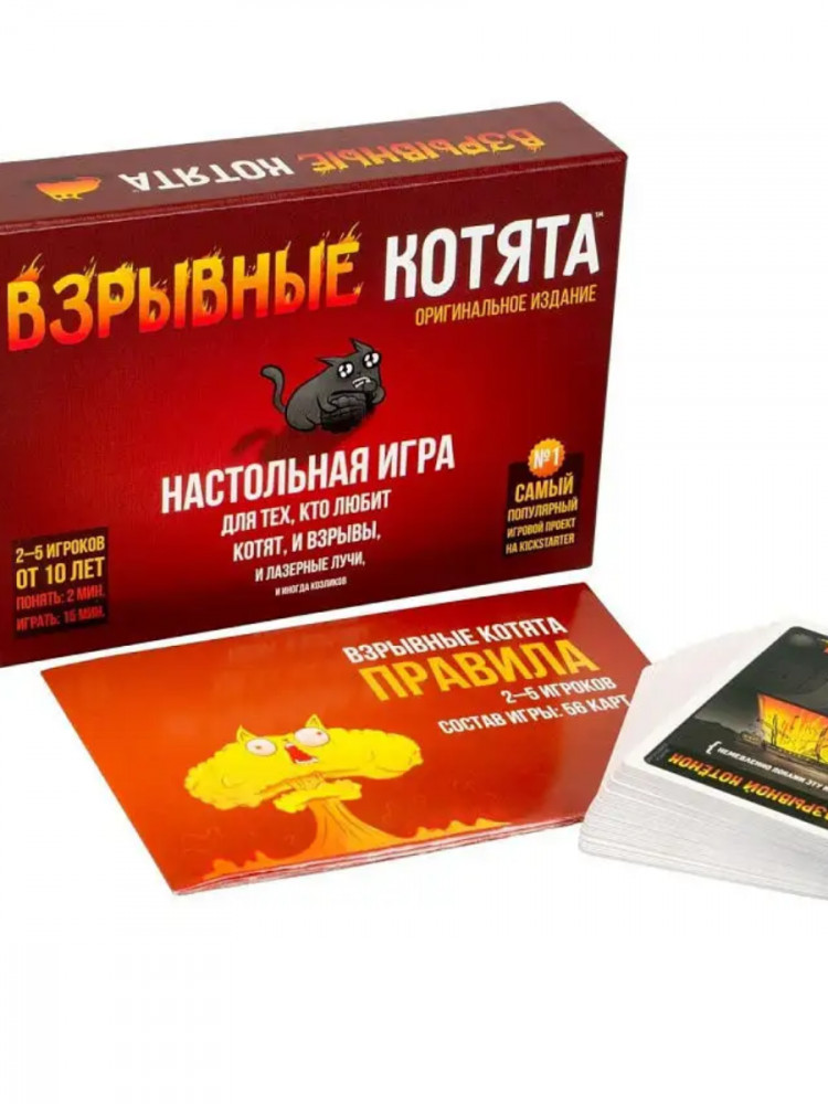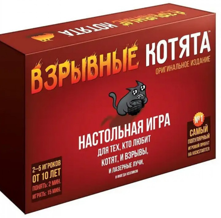 Игра настольная «Взрывные котята»В данный момент этот товар отсутствует в продаже. Возможно, у нас найдется аналогичный или похожий товар здесь. Перед вами стратегическая версия «русской рулетки», заряженная котятами. Игроки по очереди берут карты из колоды, пока кто-то из них не вытянет взрывного котёнка. От верной смерти игрока могут спасти только отвлекающие пушистое зло карты: лазерная указка, бутеры с валерианой или почёсывание пузика. Все остальные карты в колоде нужны, чтобы не позволить взрывным котятам перебежать вам дорогу и, если повезёт, заманить их к соперникам. Эта милейшая игра максимально проста в освоении, она отлично подойдет для посиделок с друзьями и в кругу семьи. Котят можно взять с собой в любую поездку благодаря компактной коробочке. Отличается уникальным дизайном, в этих прекрасных рисованных котят просто невозможно не влюбиться! |