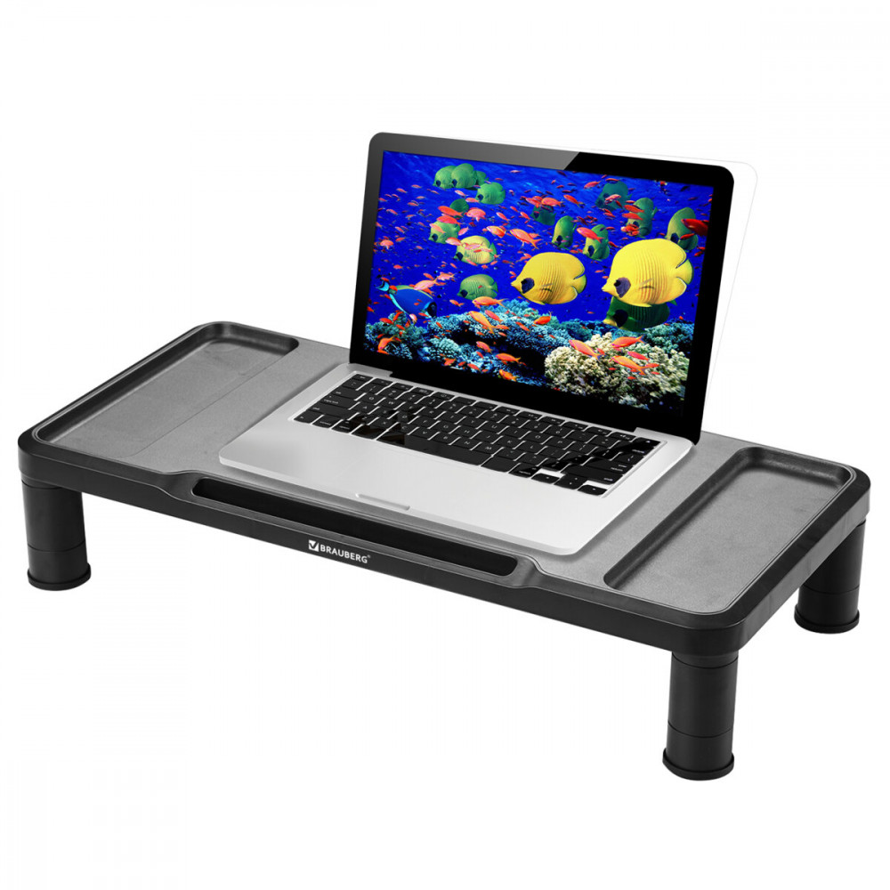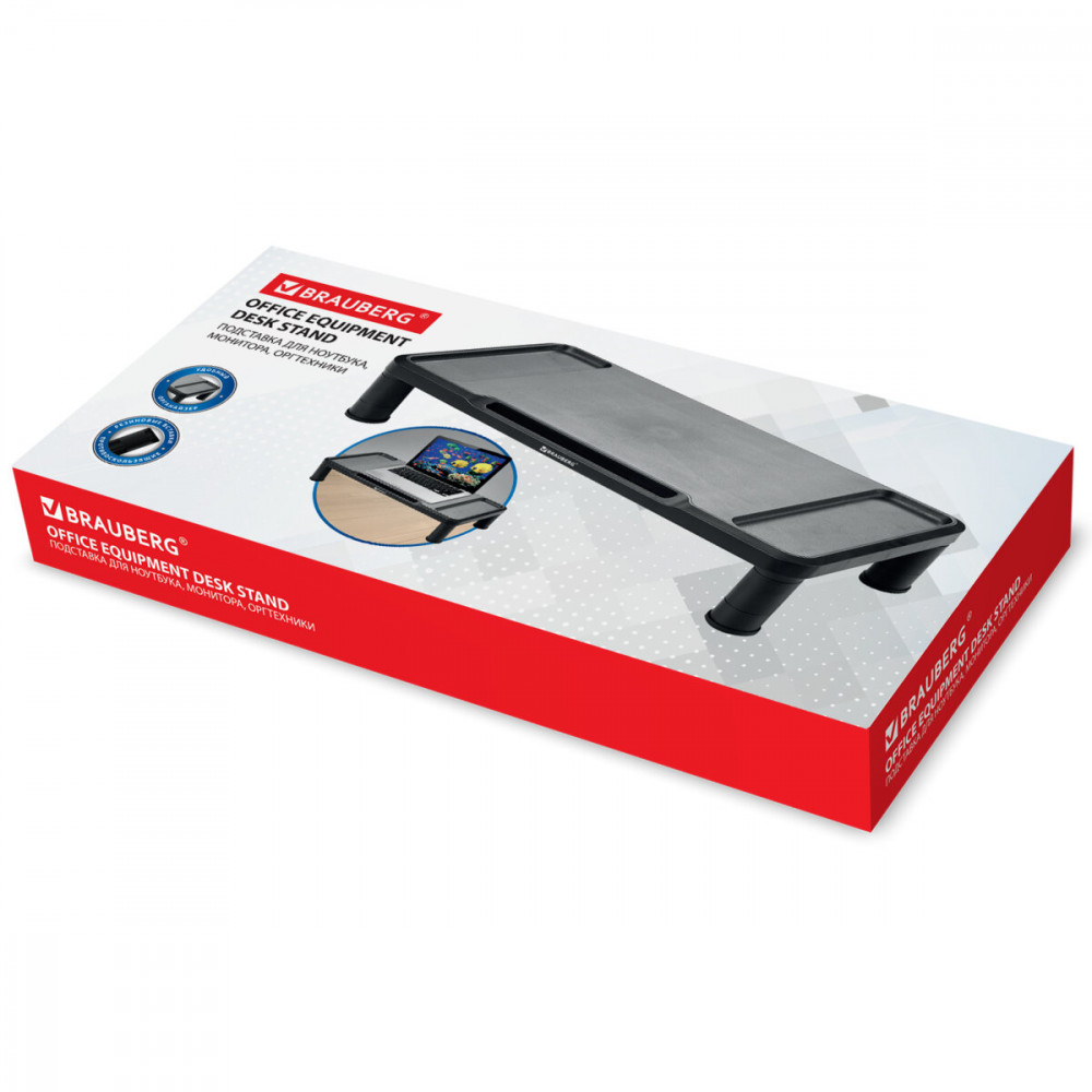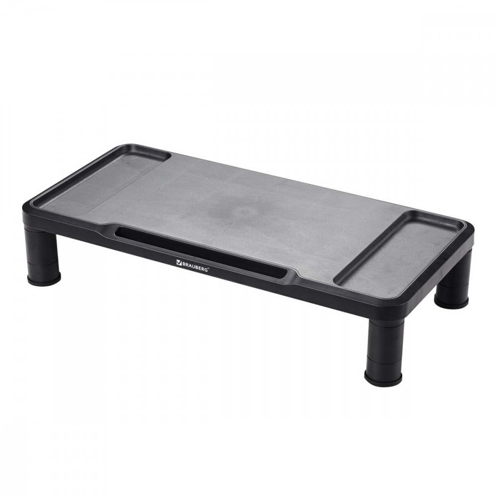 Настольная подставка BRAUBERG предназначена для размещения монитора, ноутбука, принтера. Модульная конструкция подставки позволяет регулировать ее высоту и подобрать оптимальный угол обзора. Подставка под монитор, ноутбук, принтер и прочую оргтехнику — незаменимый аксессуар для вашего рабочего стола. Она поднимает экран на более удобную высоту и оптимизирует угол обзора, что снижает нагрузку на шею, позвоночник и плечи, помогая сохранить правильную осанку. Модульная конструкция подставки позволяет подобрать нужную высоту для пользователей любого роста. Максимальная нагрузка подставки — 15 кг. Изготовлена из долговечного высококачественного материала — ударопрочного полистирола. Резиновые накладки опор предохраняют поверхность стола от повреждений и предотвращают скольжение.