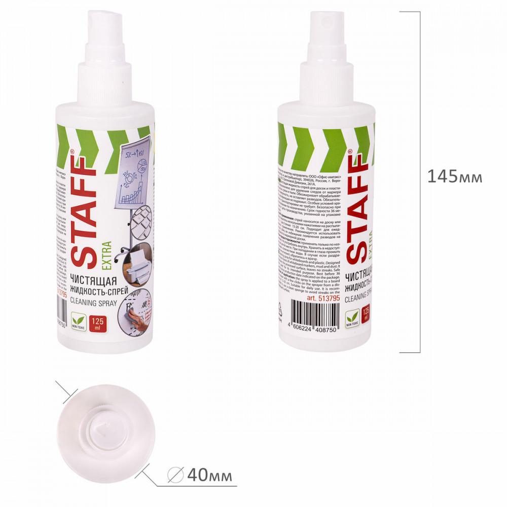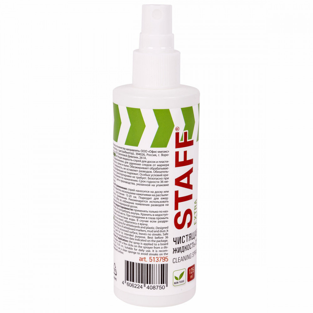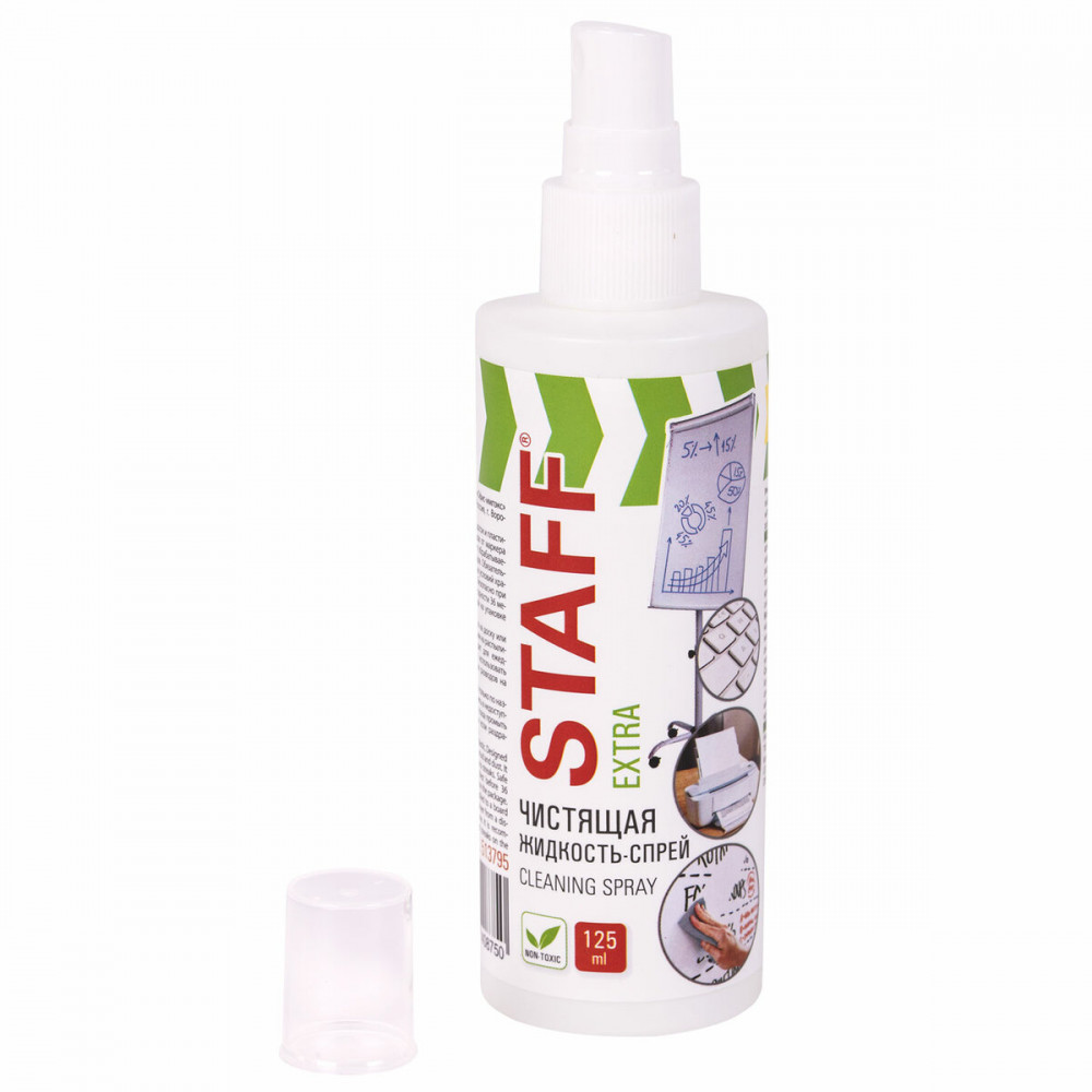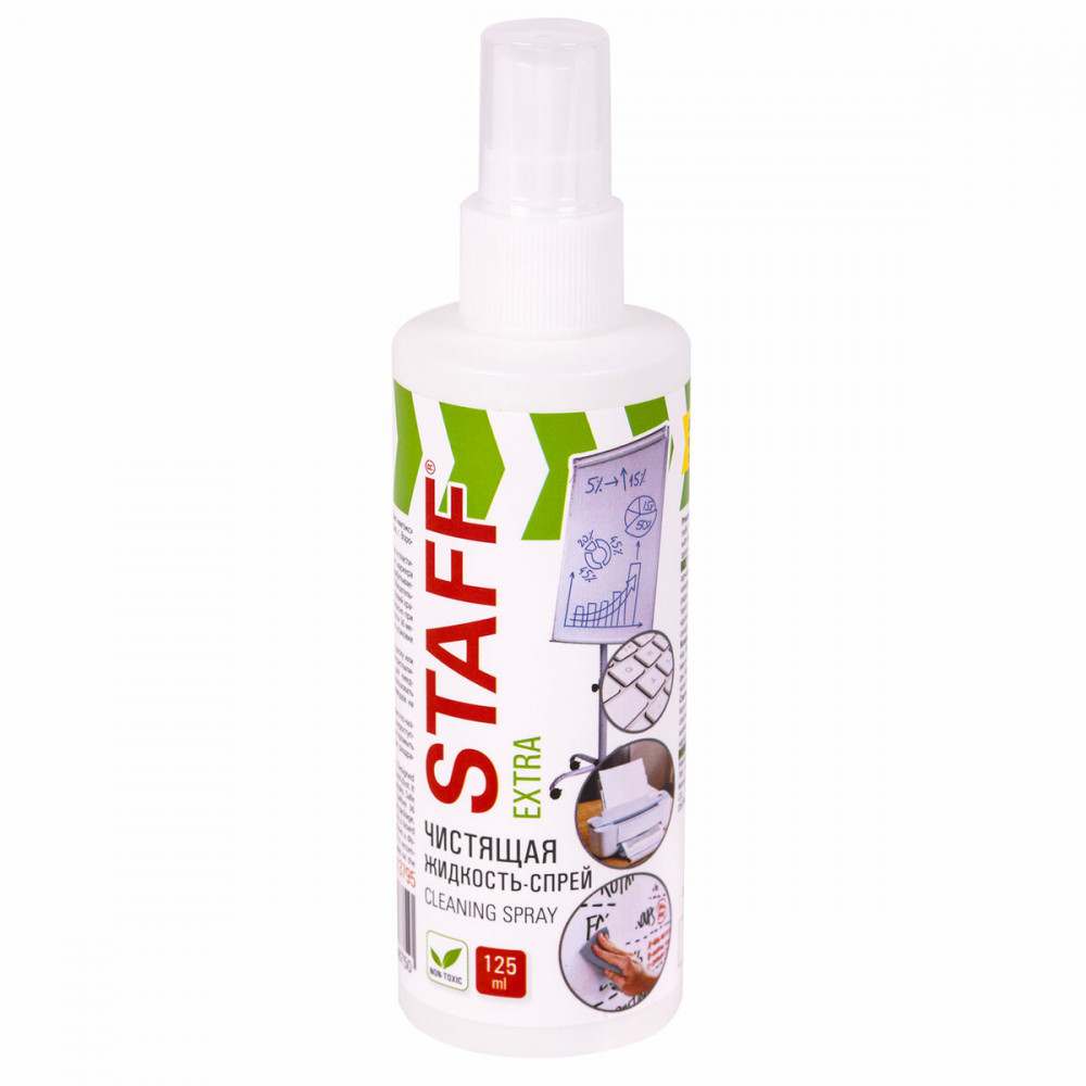 Staff Чистящая жидкость-спрей для маркерных досокВ данный момент этот товар отсутствует в продаже. Возможно, у нас найдется аналогичный или похожий товар здесь. Чистящая жидкость-спрей Staff Extra предназначена для удаления надписей и загрязнений с маркерных досок и пластиковых поверхностей. Устраняет следы сухого маркера, пыли, отпечатков пальцев и других загрязнений, а также дезинфицирует поверхность. Подходит для ежедневного применения. Объем – 125 мл. Каждый флакон дополнительно упакован в термоусадочную пленку. Рекомендуется к использованию вместе с сухими стирающими салфетками. Купите чистящую жидкость-спрей для маркерных досок Staff для легкого и комфортной очистки ваших рабочих поверхностей! |
