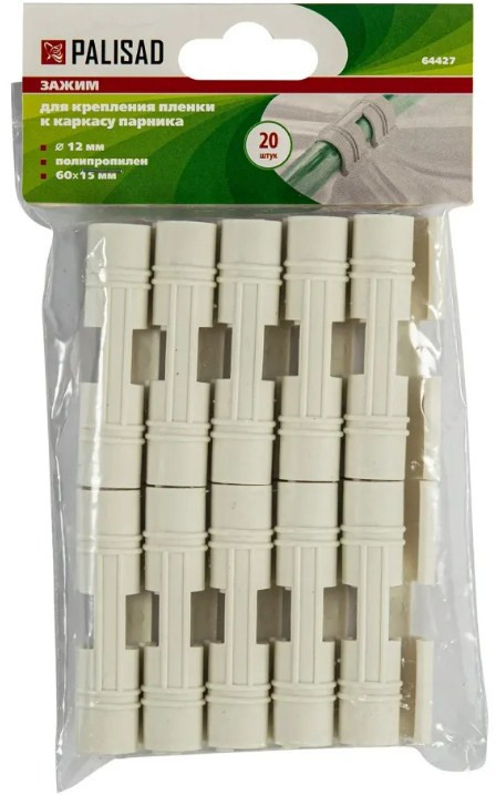 Белые зажимы для крепления пленки к каркасу парника Palisad, 20 шт., надежно фиксирует пленку или укрывной материал на дугах диаметром 12 мм. Он всегда пригодится в подсобном хозяйстве при сборке парников для выращивания растений.