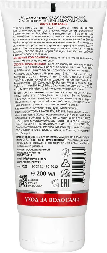 Aravia Маска-активатор для роста волос с кайенским перцем и малом усьмы «Spicy Hair Mask»