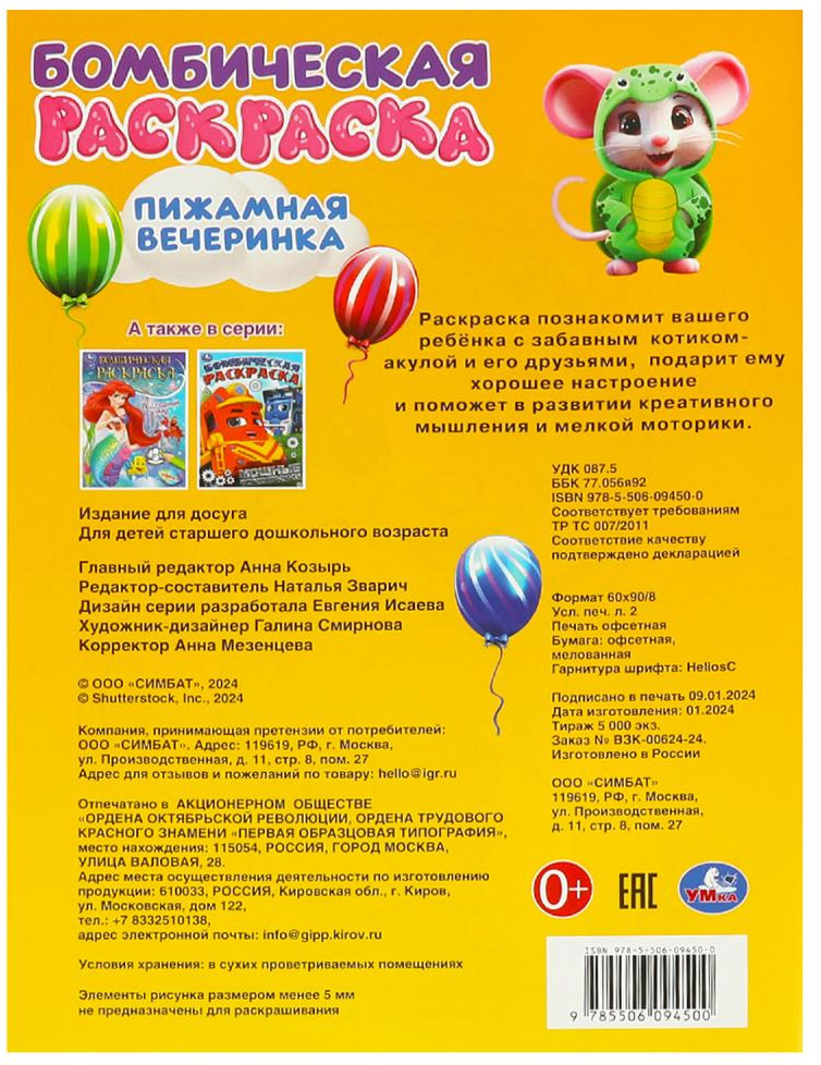 💳 Оплатить за товар можно при получении 🇰🇿 Есть бесплатная доставка по Казахстану от 1 дня 🎁 Копите бонусы с каждой покупки Серия: Бомбическая раскраска Бомбическая раскраска «Пижамная вечеринка» ТМ «УМка» обязательно понравится юным художникам. |