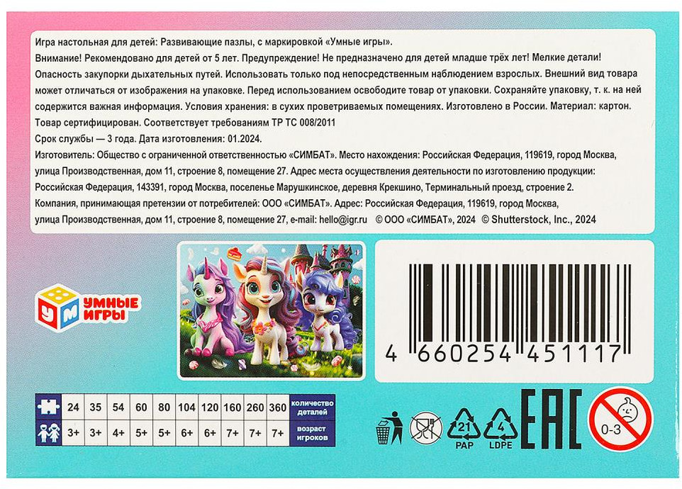 💳 Оплатить за товар можно при получении 🇰🇿 Есть бесплатная доставка по Казахстану от 1 дня 🎁 Копите бонусы с каждой покупки Классические пазлы в коробке «Волшебные приключения» ТМ «Умные игры» непременно понравятся маленьким любознайкам. |