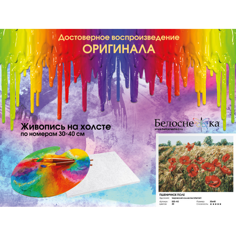 Создавайте прекрасные сюжеты, станьте настоящим художником! Просто возьмите стакан с водой и бумажную салфетку и время для творчества наступило. Оптимальный размер для того, чтобы получился красивый детализированный сюжет. Основа картины — хлопковый холст на деревянном подрамнике с напечатанной схемой изображения. Холст загрунтован и полностью готов к нанесению краски, акриловые краски на водной основе экологически безопасны, номера на баночках соответствуют номерам на схеме. Количество красок достаточное для раскрашивания картины даже в 2 слоя. Красивый сюжет, достоверное воспроизведение оригинала от Белоснежки!