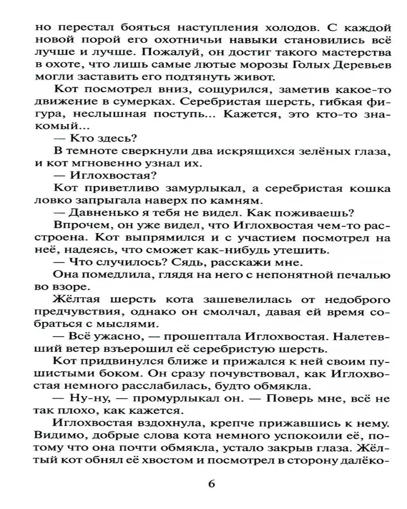 Коты-воители. Самая темная ночьВ данный момент этот товар отсутствует в продаже. Возможно, у нас найдется аналогичный или похожий товар здесь. Серия: Коты-воители. Испытание Грача Ценой невероятных усилий и огромных жертв коты-воители одолели Темнохвоста и его банду. Кажется, что все невзгоды остались позади и больше ничего не угрожает их спокойной жизни. Даже многострадальное Небесное племя наконец-то заняло законное место среди сородичей и получило собственную территорию. Однако тёмные тучи, нависшие над лесом, вовсе не спешат рассеиваться. Речные коты решают отгородиться от соседей, а обескровленное племя Теней окончательно теряет веру в своего предводителя и оказывается на грани распада. В эти непростые времена звёздные предки посылают своим подопечным новое пророчество. Они предупреждают племена о грядущей буре, предотвратить которую способен лишь таинственный кот с шестью пальцами на лапе. Кто этот загадочный незнакомец? Где искать его? А главное, как именно он может помочь племенам? Котам остаётся лишь надеяться, что в сгущающемся мраке они сумеют найти путь к спасению, ведь времени на это у них остаётся совсем немного... |