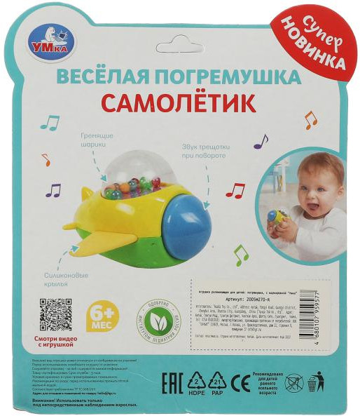 💳 Оплатить за товар можно при получении 🇰🇿 Есть бесплатная доставка по Казахстану от 1 дня 🎁 Копите бонусы с каждой покупки Весёлая погремушка «Самолётик» ТМ «УМка» разработана специально для самых маленьких: |