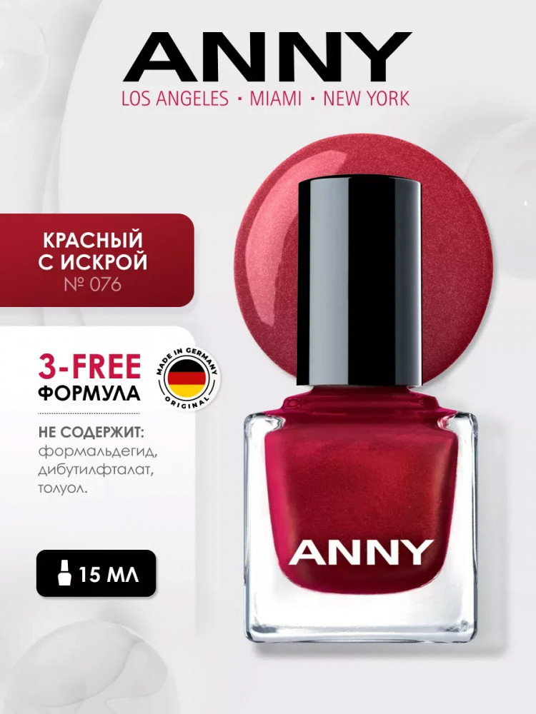 ANNY Лак для ногтей, оттенок 076 Красный с искрой
