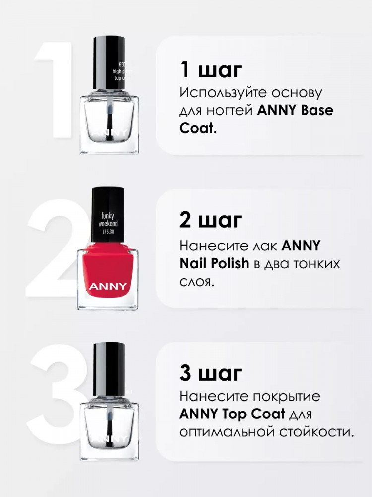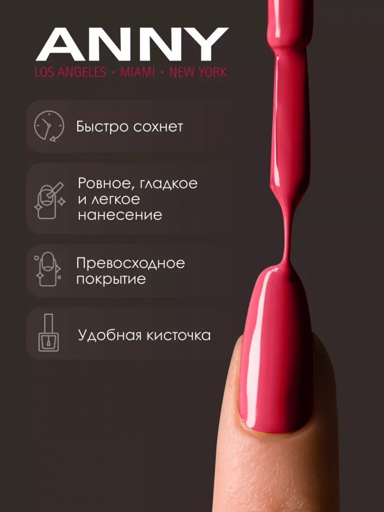 Взяла с хорошей скидкой. Красивый летний цвет, но требует 2 слоя нанесения, быстро сохнет, держится неделю. Лаки от ANNY - лучшие!