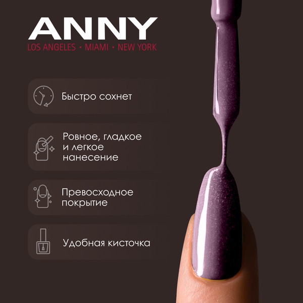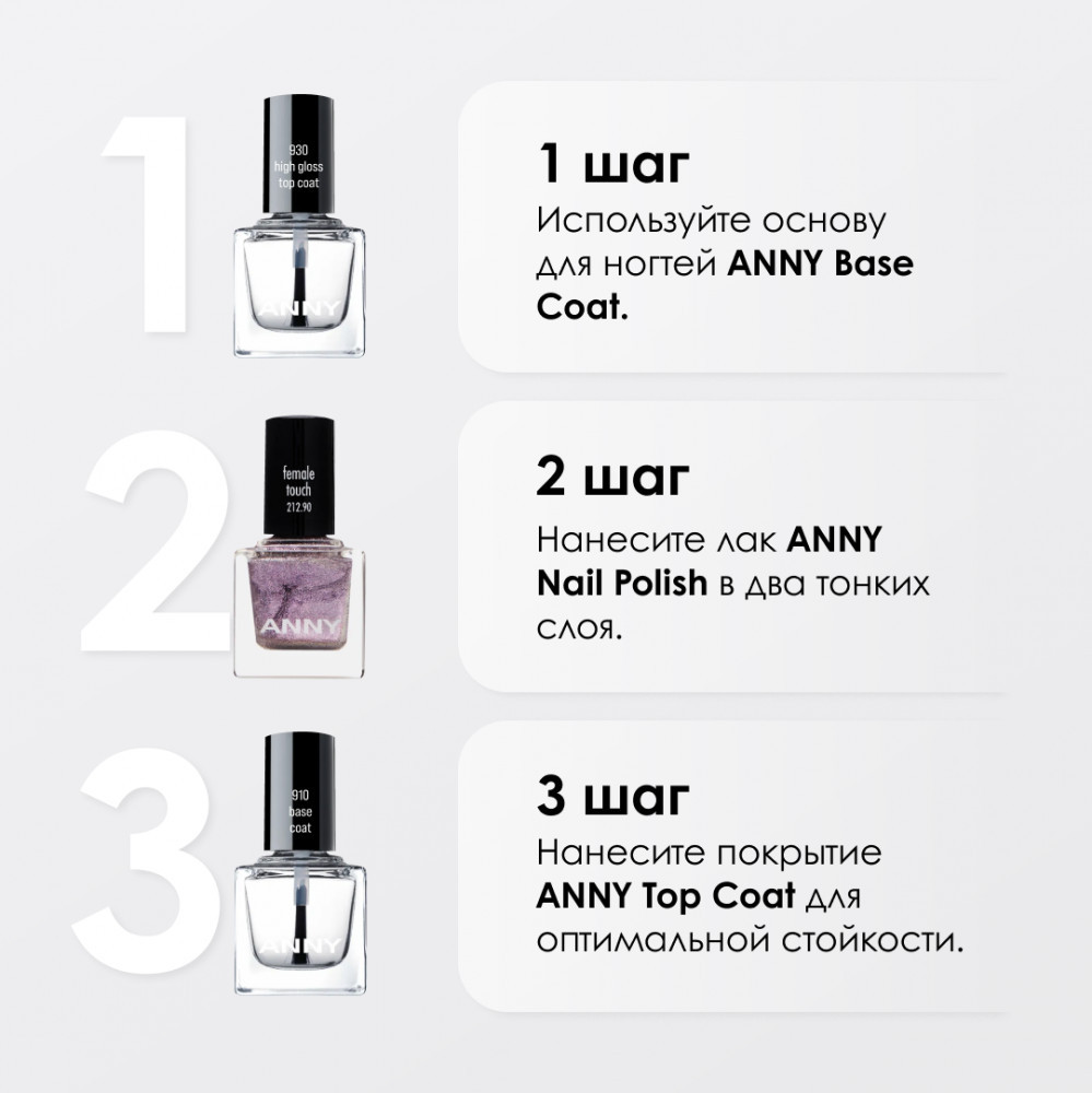 • быстрое высыхание: благодаря особой формуле, лак для ногтей от ANNY быстро сохнет, что позволяет сразу же вернуться к своим делам