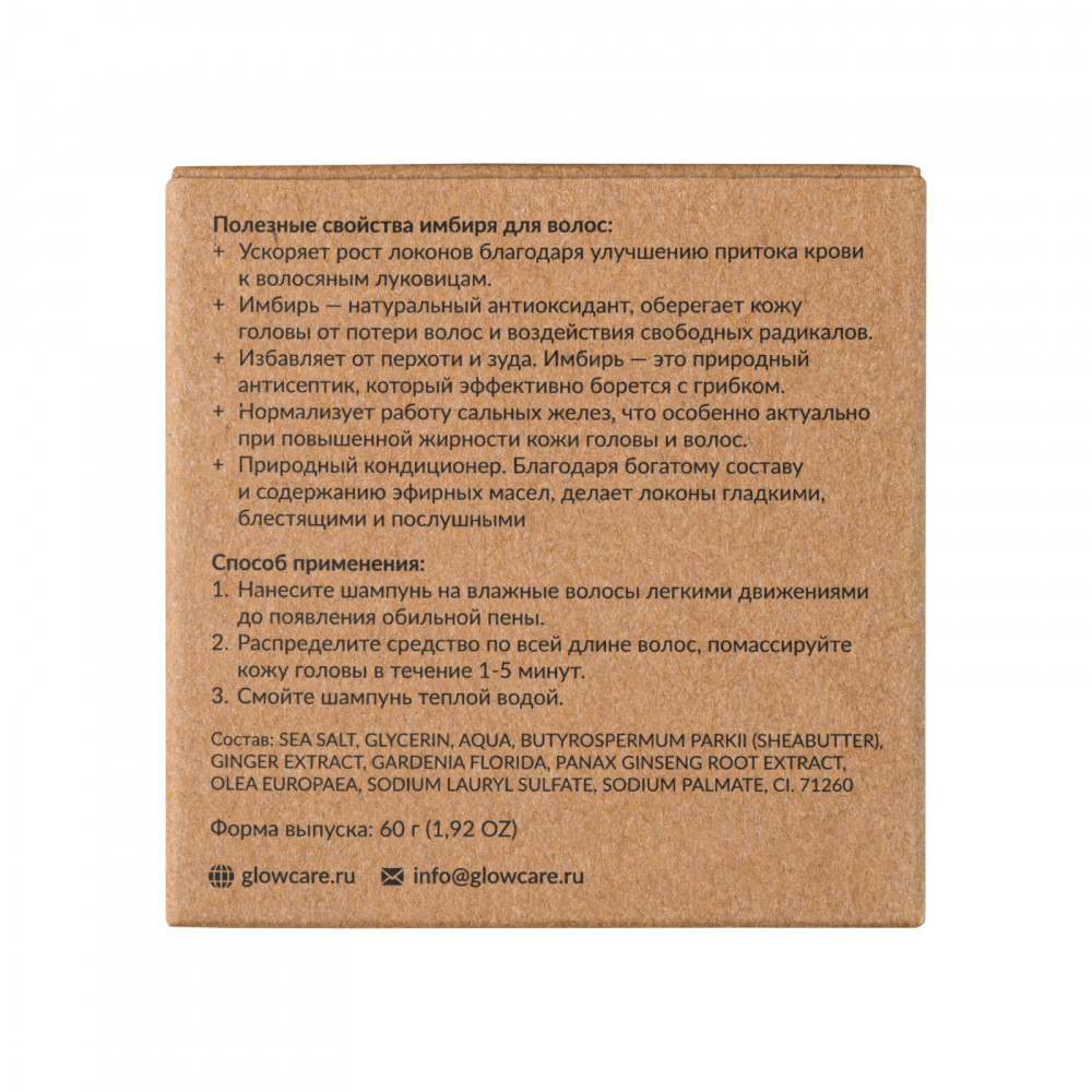 Glow care Твердый шампунь для объема и роста волос с экстрактом имбиря