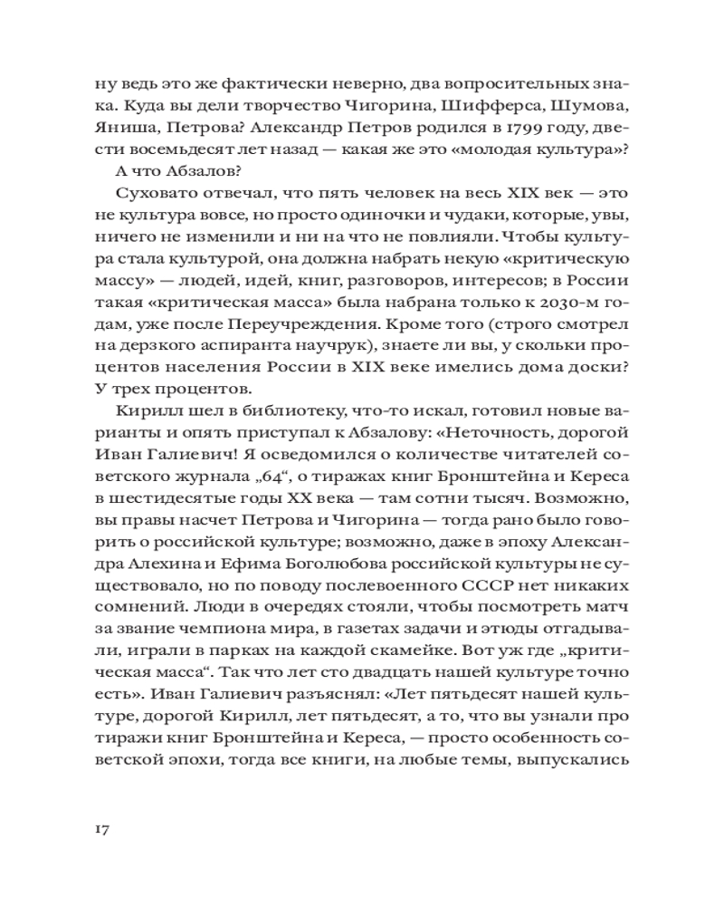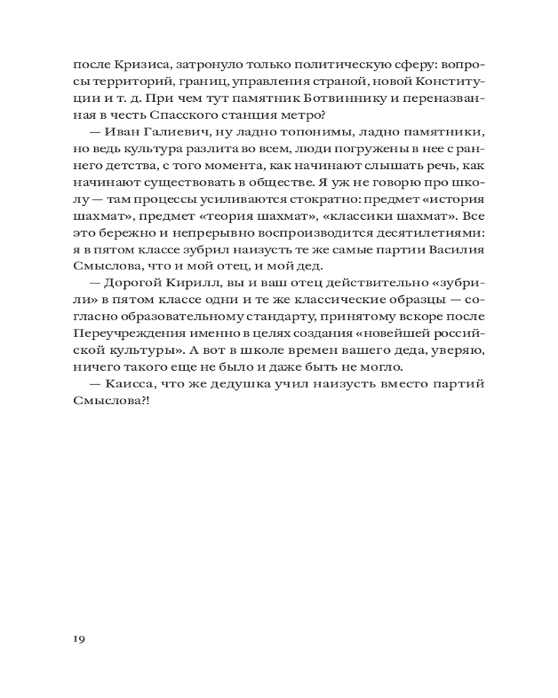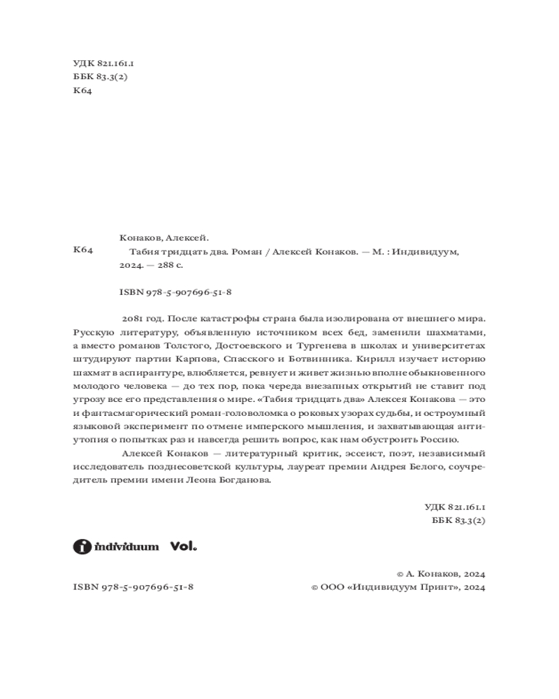 💳 Оплатить за товар можно при получении 🇰🇿 Есть бесплатная доставка по Казахстану от 1 дня 🎁 Копите бонусы с каждой покупки Серия: Individuum. Sub 2081 год. После катастрофы страна была изолирована от внешнего мира. Русскую литературу, объявленную источником всех бед, заменили шахматами, а вместо романов Толстого, Достоевского и Тургенева в школах и университетах штудируют партии Карпова, Спасского и Ботвинника. Кирилл изучает историю шахмат в аспирантуре, влюбляется, ревнует и живет жизнью вполне обыкновенного молодого человека — до тех пор, пока череда внезапных открытий не ставит под угрозу все его представления о мире. |