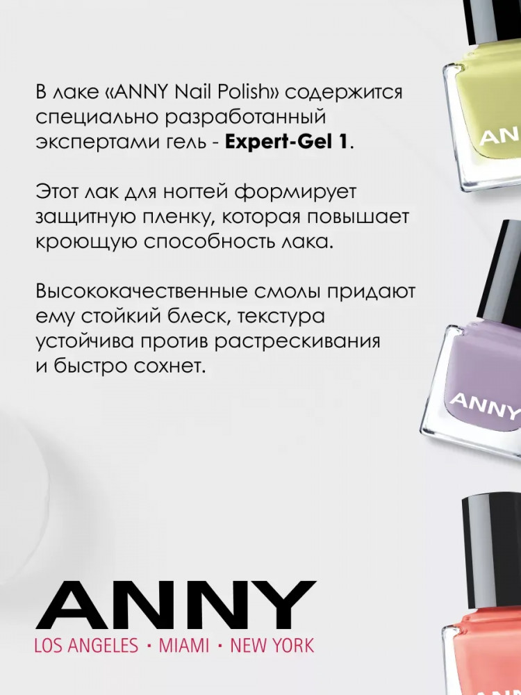 Взяла с хорошей скидкой. Красивый летний цвет, но требует 2 слоя нанесения, быстро сохнет, держится неделю. Лаки от ANNY - лучшие!