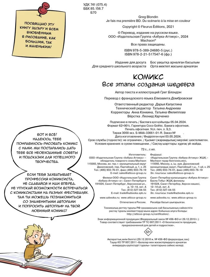 💳 Оплатить за товар можно при получении 🇰🇿 Есть бесплатная доставка по Казахстану 🎁 Копите бонусы с каждой покупки Серия: Учимся рисовать Ты обожаешь комиксы? Попробуй создать свою графическую историю! Тебе не обязательно уметь рисовать или иметь заранее готовый сценарий. Благодаря этой книге ты узнаешь, как шаг за шагом пройти путь профессионального комиксиста: от разработки сюжета и персонажей до оформления обложки и даже сотрудничества с издательством! Ты научишься записывать текст для комикса, рисовать пузыри с репликами, делать раскадровку, подбирать цветовые оттенки и передавать настроение героев. Советы профессионалов и подробные иллюстрации помогут тебе создать уникальный комикс и воплотить в жизнь невероятные идеи! |