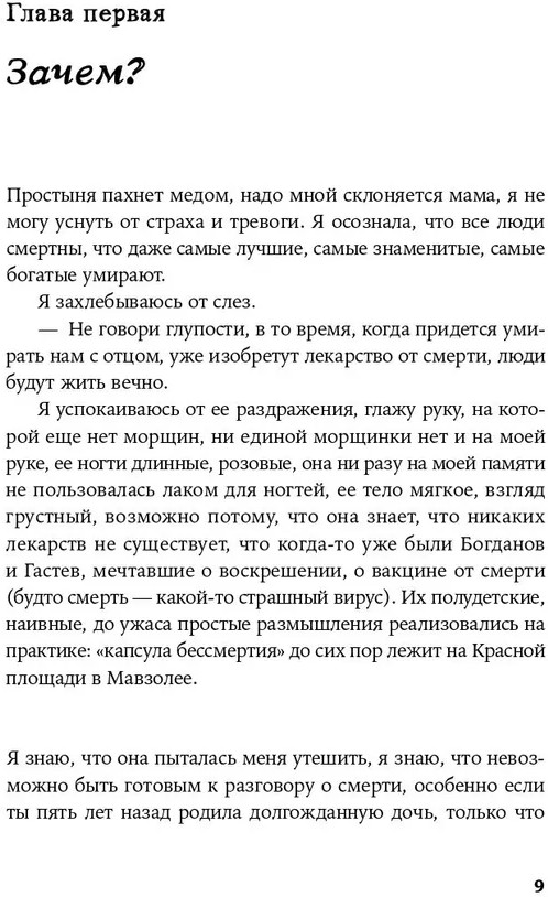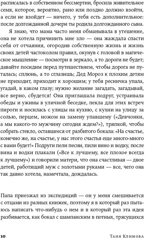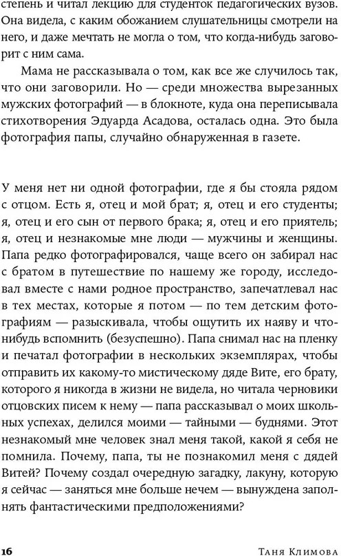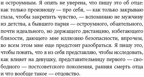 Отец двенадцатилетней Тани погибает в теракте в Ростовской области. Через проживание этого горя и рассказ о собственной жизни взрослеющая героиня осмысляет историю своей страны. Изучая литературу русской эмиграции и разбираясь в собственном прошлом на сессиях с психологом, она рассматривает отношения с отцом сквозь призму культуры, обращаясь к чужим историям — к опыту дочери Сталина Светланы Аллилуевой, к восприятию отцов Марины Цветаевой, Бориса Рыжего, Жан-Поля Сартра, Петера Эстерхази и других известных литераторов. |
