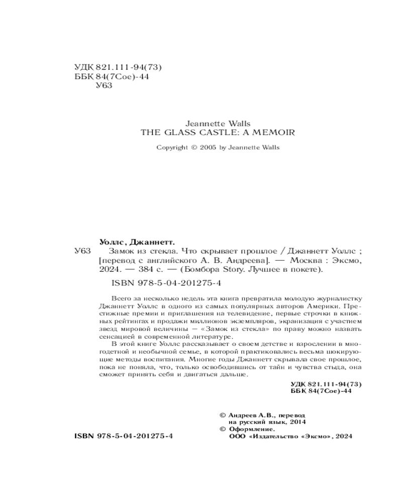 Замок из стекла. Что скрывает прошлоеВ данный момент этот товар отсутствует в продаже. Возможно, у нас найдется аналогичный или похожий товар здесь. Серия: Бомбора Story. Лучшее в покете Всего за несколько недель эта книга превратила молодую журналистку Джаннетт Уоллс в одного из самых популярных авторов Америки. Престижные премии и приглашения на телевидение, первые строчки в книжных рейтингах и продажи миллионов экземпляров, экранизация с Бри Ларсон в главной роли — «Замок из стекла» по праву можно назвать сенсацией в современной литературе. В этой книге Уоллс рассказывает о своем детстве и взрослении в многодетной и необычной семье, в которой практиковались весьма шокирующие методы воспитания. Многие годы Джаннетт скрывала свое прошлое, пока не поняла, что, только освободившись от тайн и чувства стыда, она сможет принять себя и двигаться дальше. |