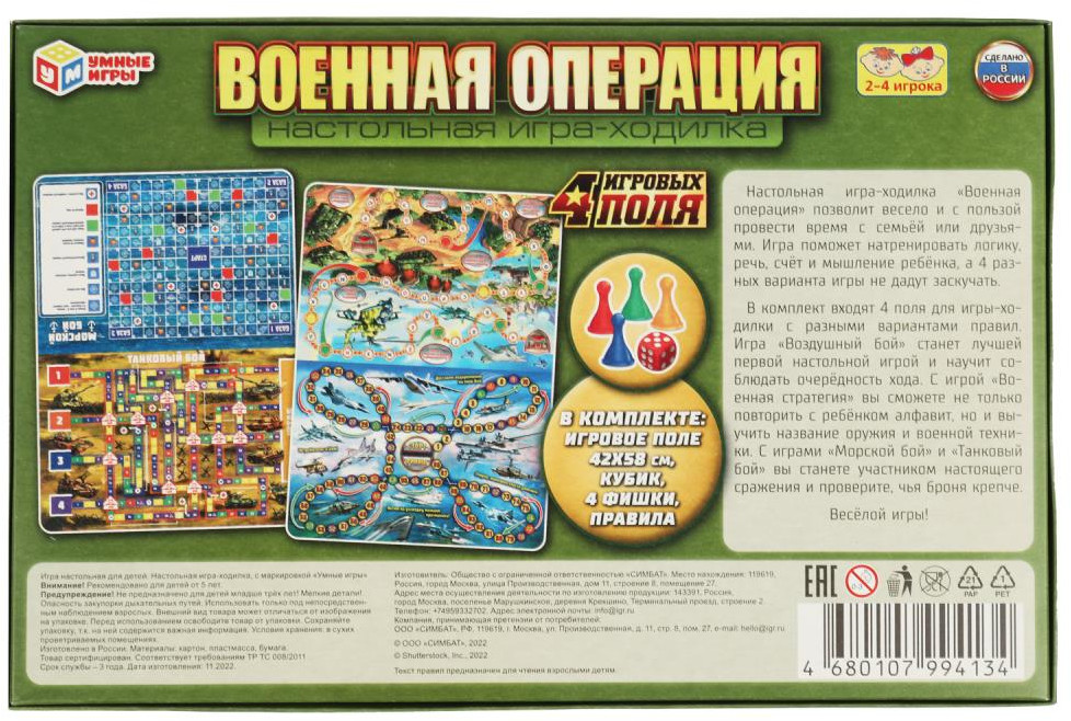 | Умные игры Игра-ходилка настольная 4 в 1 «Военная операция»+45 (бонусов)
