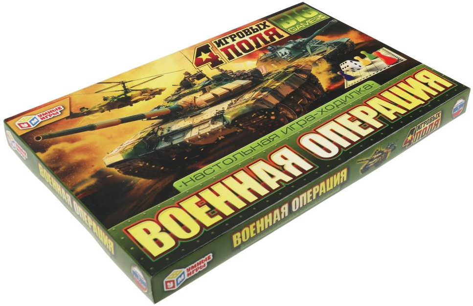 Игра-ходилка настольная 4 в 1 «Военная операция» ТМ «Умные игры» — игра, где возможно поучаствовать в разных видах сражений!