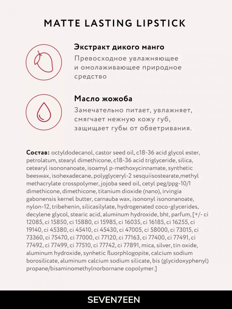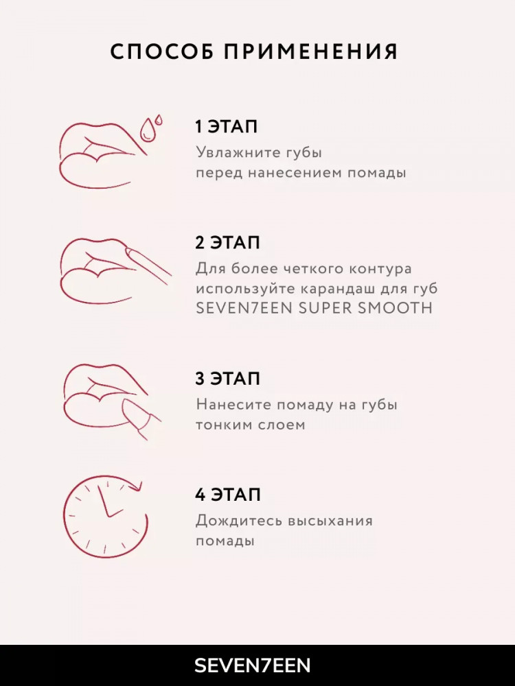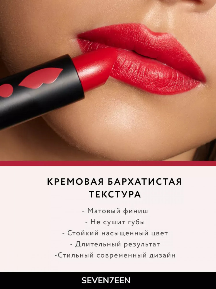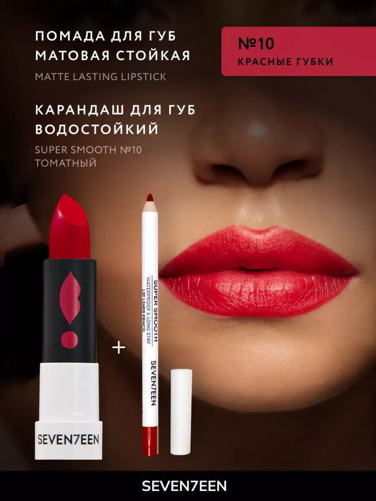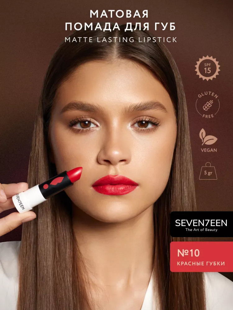 SEVEN7EEN Помада для губ устойчивая матовая «Matte lasting lipstick» SPF 15, тон 10 Красные губки