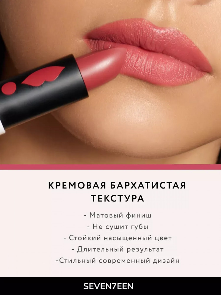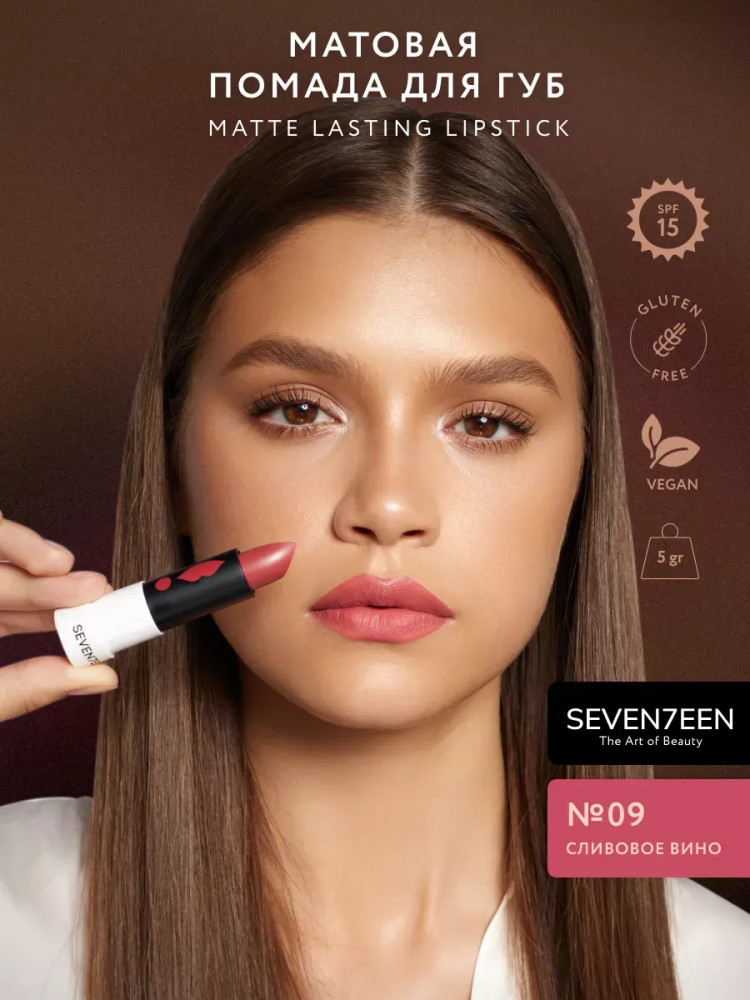 SEVEN7EEN Помада для губ устойчивая матовая «Matte lasting lipstick» SPF 15, тон 09 Сливовое вино