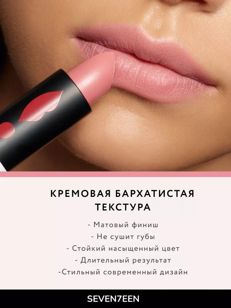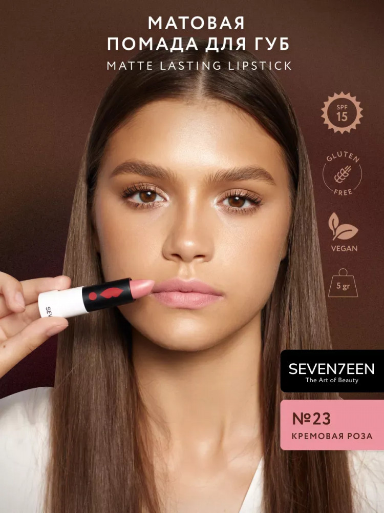 SEVEN7EEN Помада для губ устойчивая матовая «Matte lasting lipstick» SPF 15, тон 23 Кремовая роза