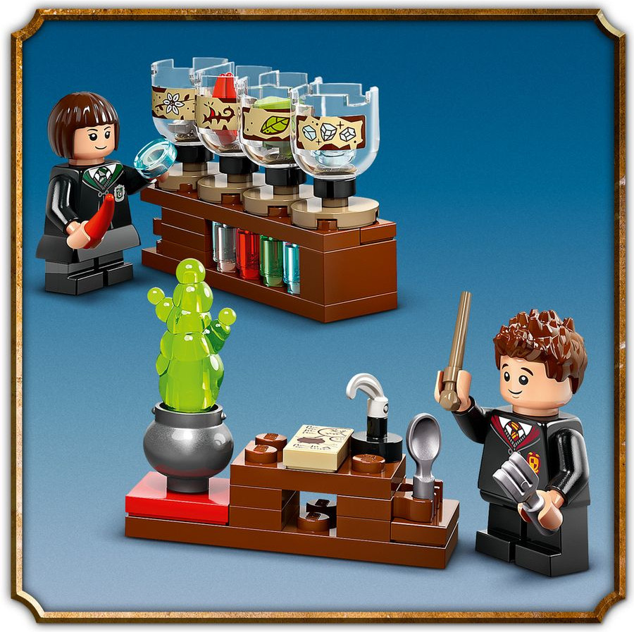 LEGO (ЛЕГО) Конструктор Harry Potter 76431 Замок Хогвартс: класс зельеварения. Hogwarts™ Castle: Potions ClassВ данный момент этот товар отсутствует в продаже. Возможно, у нас найдется аналогичный или похожий товар здесь. Серия: LEGO Harry Potter Позвольте вашей юной ведьме, волшебнику или маглу присоединиться к уроку зелий в замке Хогвартс с этой коллекционной игрушкой-волшебником LEGO Harry Potter (76431) для детей от 8 лет и старше. В нем есть сборный класс Гарри Поттера, который открывается для легкой игры и наполнен аутентичными деталями: доска с инструкциями по приготовлению зелий, бутылки с ингредиентами для зелий, которые можно размешивать в котле, и другое оборудование, вдохновляющее на творческую игру. На выставке также представлены 2 из 14 коллекционных портретов Хогвартса, а также мини фигурки LEGO профессора Северуса Снейпа и учеников Гермионы Грейнджер, Пэнси Паркинсон и Шеймуса Финнигана, которые разыгрывают истории о Гарри Поттере. |
