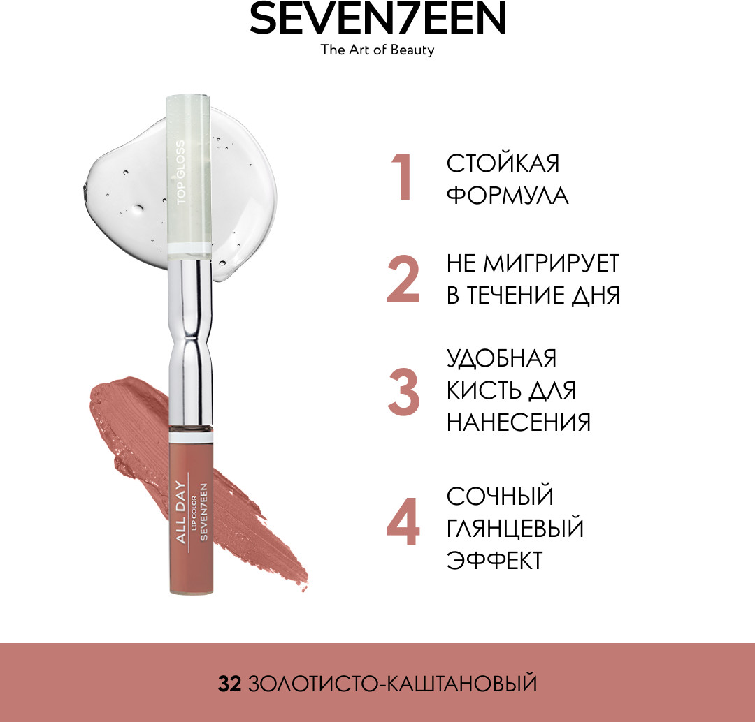 SEVEN7EEN Помада для губ жидкая «All Day Lip Color&Top Gloss», тон 32 Золотисто-каштановый