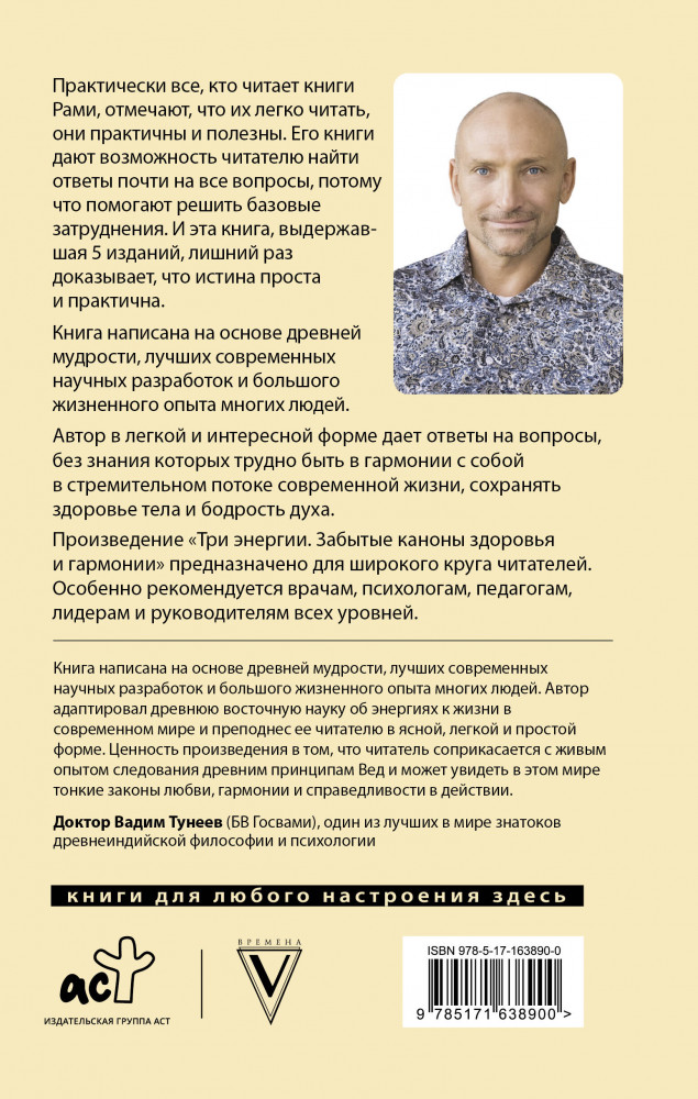 💳 Оплатить за товар можно при получении 🇰🇿 Есть бесплатная доставка по Казахстану 🎁 Копите бонусы с каждой покупки Серия: Загадки души Практически все, кто читает книги Рами, отмечают, что их легко читать, они практичны и полезны. Его книги дают возможность читателю найти ответ почти на все вопросы, потому что помогают решить базовые затруднения. И эта книга, выдержавшая 5 изданий, лишний раз доказывает, что истина проста и практична. |