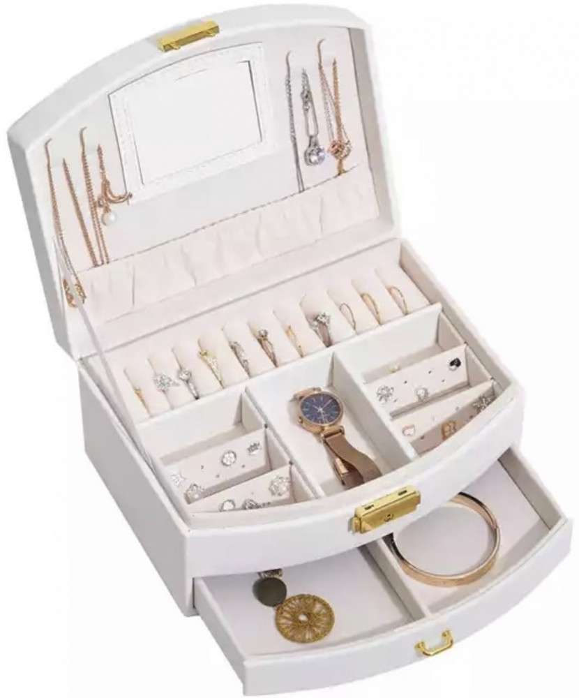 SLD Шкатулка для украшений двухуровневая с зеркаломВ данный момент этот товар отсутствует в продаже. Возможно, у нас найдется аналогичный или похожий товар здесь. Шкатулка для украшений состоит из двух уровней, один из которых - выдвижной ящик. Отсеки для всех видов украшений, имеются петельки для цепочек с кармашком для кулонов. Имеется зеркало, ручка для переноски, закрывается на ключ. |