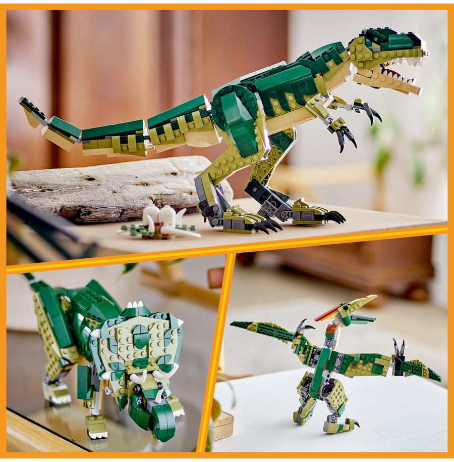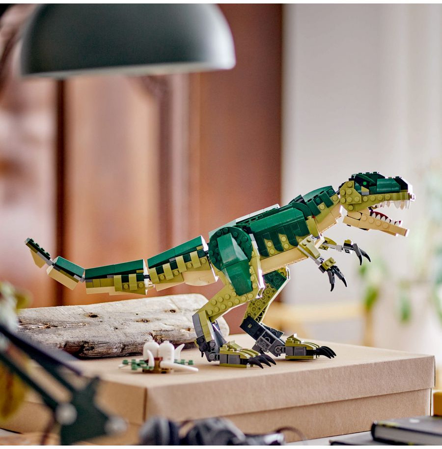 LEGO (ЛЕГО) Конструктор Creator 36403 Тираннозавр. T. rexВ данный момент этот товар отсутствует в продаже. Возможно, у нас найдется аналогичный или похожий товар здесь. Серия: LEGO Creator Мальчики и девочки в возрасте от 9 лет могут отправиться в прошлое и разыграть удивительные приключения с набором «Тираннозавр» (31151). Игрушечный тираннозавр очень подвижный: дети могут двигать его голову, ступни, хвост, челюсть, передние лапы, ноги и даже пальцы на ногах, чтобы придавать ящеру различные позы. Вместе с игрушечным тираннозавром в наборе есть гнездо, а в нем два маленьких яйца динозавра. Все вместе это будет отлично смотреться на полке или прикроватном столике. |