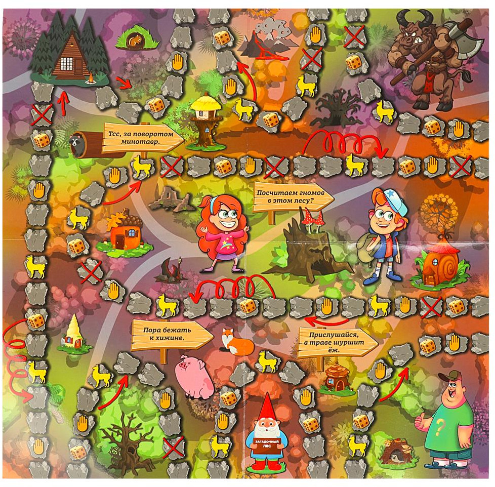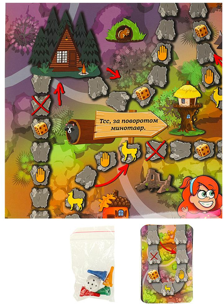 💳 Оплатить за товар можно при получении 🇰🇿 Есть бесплатная доставка по Казахстану от 1 дня 🎁 Копите бонусы с каждой покупки Добро пожаловать в загадочный лес! Выходите из хижины и отправляйтесь навстречу приключениям. По дороге вы встретите гномов и минотавров, а также обнаружите таинственные знаки, разбросанные по всем дорожкам. Вам предстоит выбрать персонажа, за которого вы будете играть и ознакомиться с его специальными способностями. Перемещайтесь по полю, выполняйте различные задания и выкладывайте новые дорожки из карт. Бросайте кубик, передвигайте фишки и тяните карточки, чтобы прийти к финишу первым! |