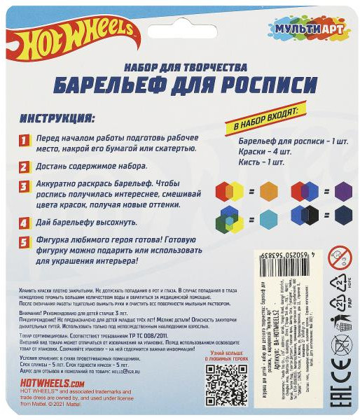 💳 Оплатить за товар можно при получении 🇰🇿 Есть бесплатная доставка по Казахстану от 1 дня 🎁 Копите бонусы с каждой покупки Серия: Hot wheels Набор для творчества — барельеф для росписи «Hot Wheels» ТМ «Мульти Арт» непременно понравится маленьким поклонникам легендарных гоночных машинок. |