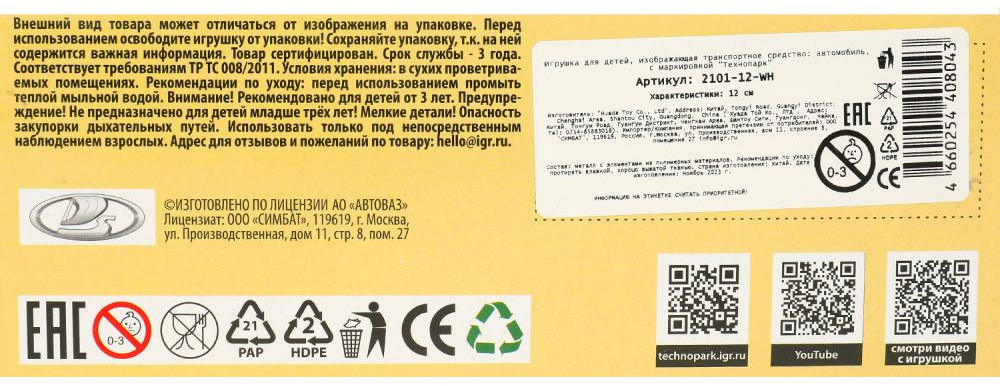 Технопарк Машина инерционная «ВАЗ-2101»