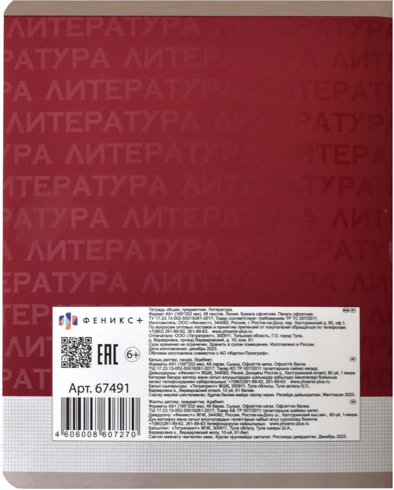Феникс + Тетрадь предметная «Литература»-34% +5
