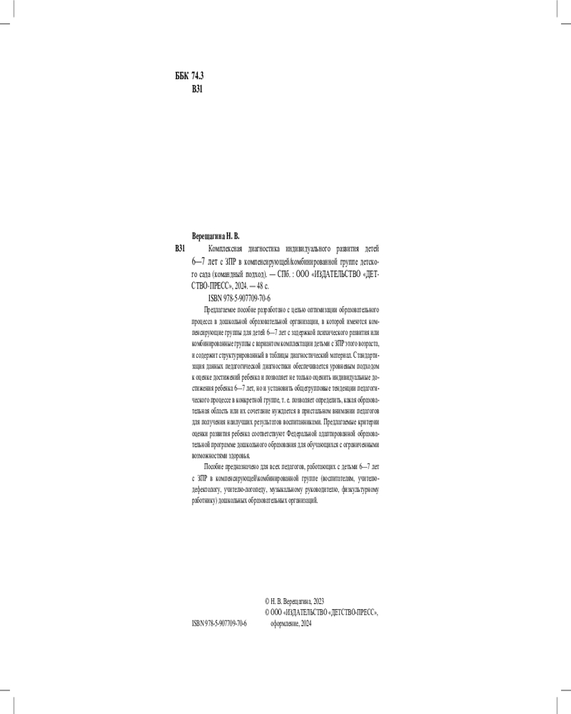 Комплексная диагностика индивидуального развития детей 6-7 лет с ЗПР в компенсирующей/комбинированной группе детского сада (командный подход)Наталья Валентиновна Верещагина +19